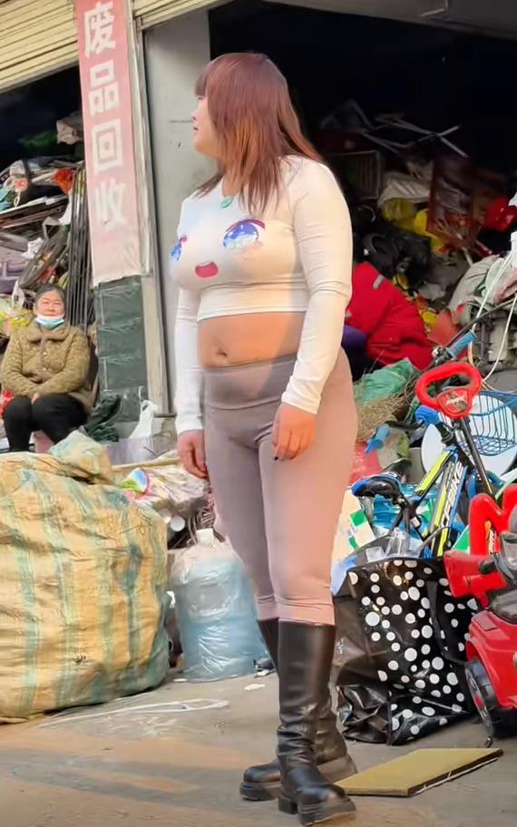 这本身并没有什么奇怪的,但问题在于,这名女子之所以会成为极为大妈眼中的焦点,主要原因还是因为女子虽然身材看起来不那么好,但是却显得很自信,尤其是敢穿着性感的衣服出现在大街上,这自然就会吸引到大妈们的眼光。