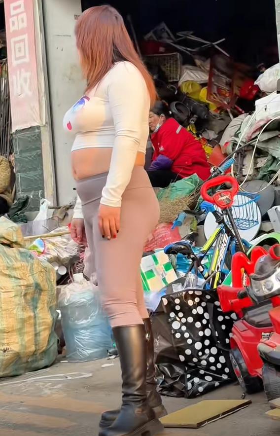 上半身女子要刻意打扮成一种性感的风格,而在下半身,女子追求的也是同样的效果。女子下半身也穿着紧身的裤子,而且这种裤子看起来像是瑜伽裤,薄薄的裤子贴在皮肤上,能够最大限度地勾勒出一个人的身材形状。虽然女子的身材并不算多么好,但是女子这么一打扮,无形中也让自己的身材看起来多了一些性感的成分。