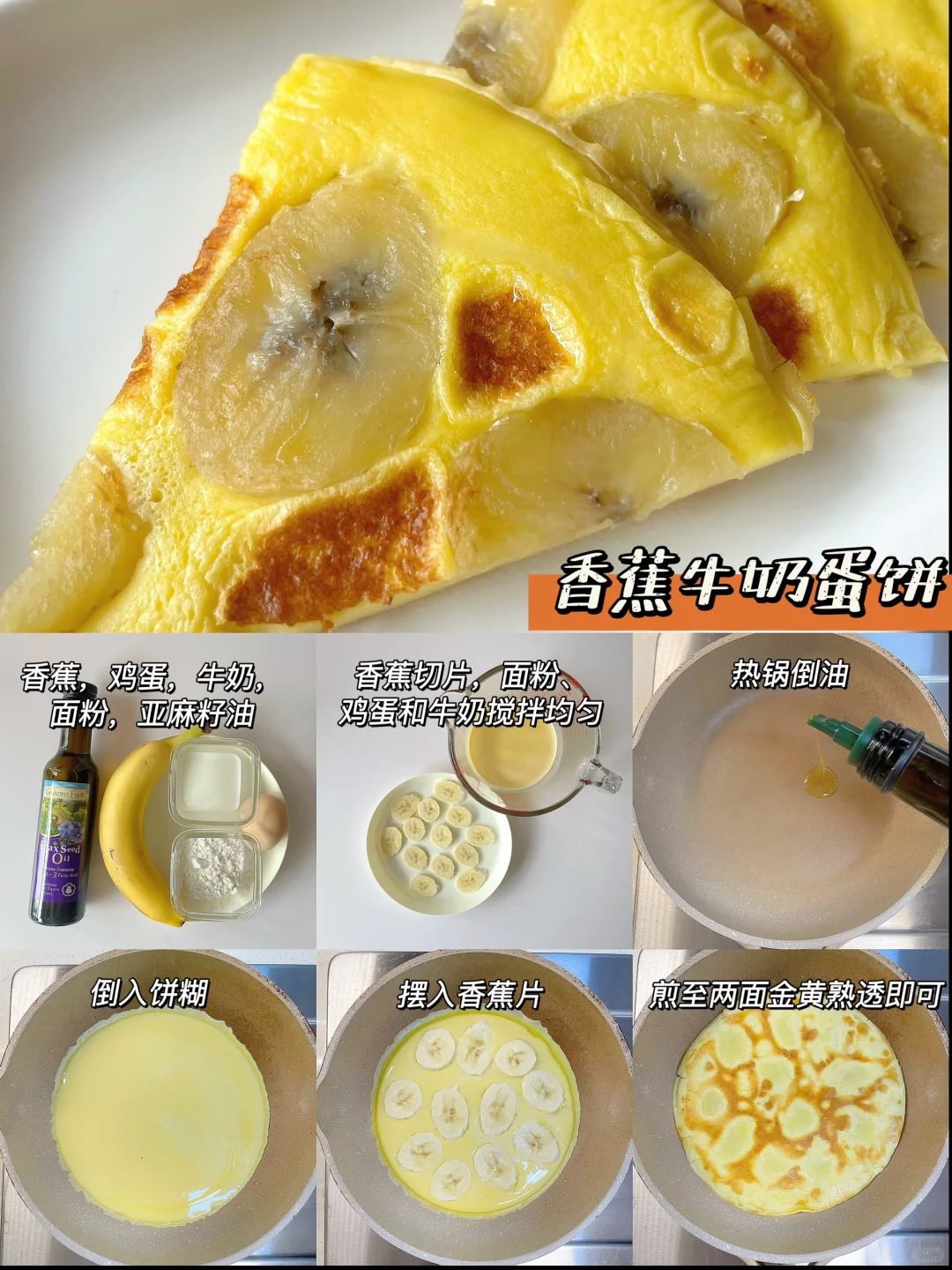 食材:香蕉一根,牛奶40克,鸡蛋一个,低筋面粉20克,亚麻籽油适量;