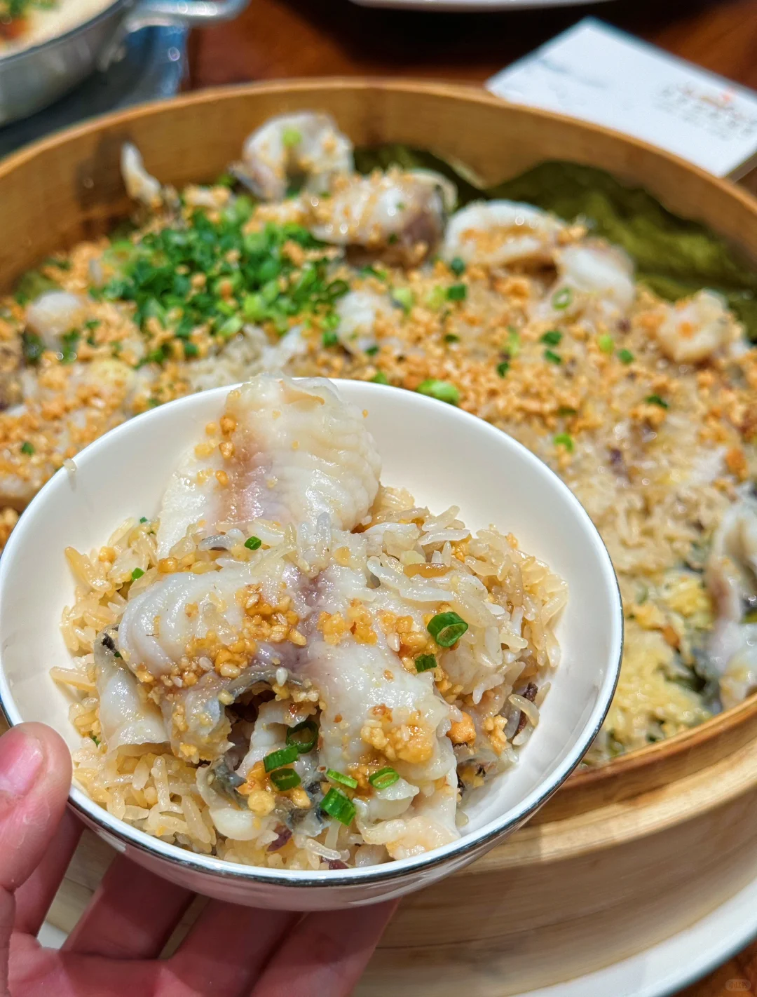 听说是店里的招牌,哇,鱼肉吃起来果然鲜美有嚼劲,而且没有骨头哦~搭配粒粒分明的特色米饭,细细嚼起来还有腊肉,芝麻等,多种口味交织在一起,真的越吃越香~没吃过的家人们真的可以尝试下,很有特色🌟