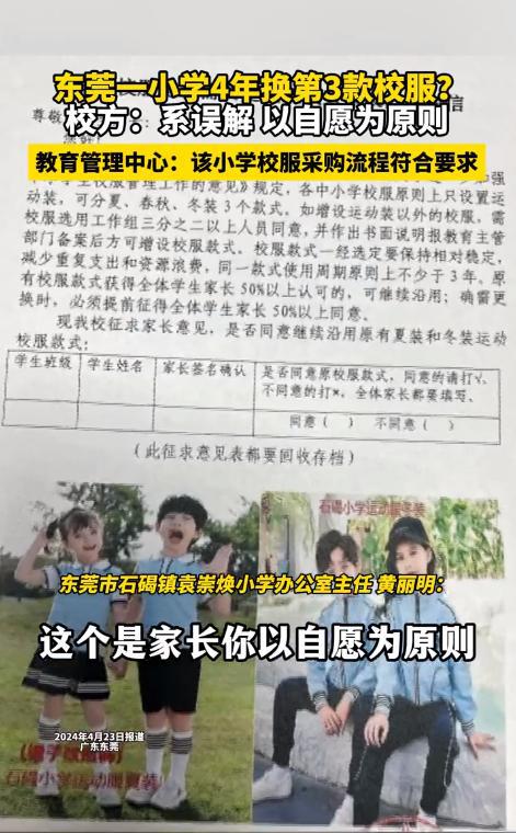 这是东莞的一所小学,家长没办法,只能网络曝光了,4年换了三款校服,引起了很多人的关注。