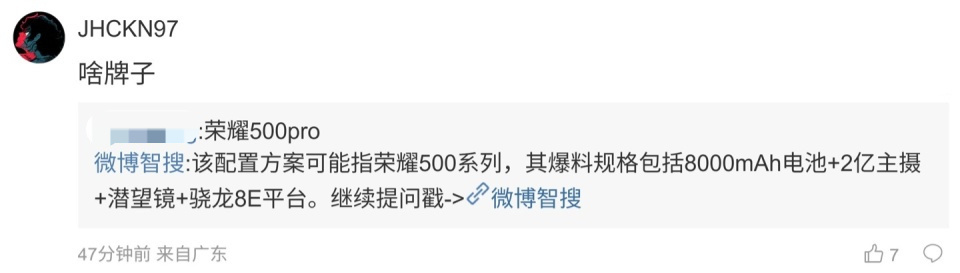 近日,有数码博主曾曝光了疑似荣耀500系列新机已经入网的消息,随后,还有网友晒出了疑似该机的线稿图,同时,荣耀游戏研发工程师 @荣耀冯同学 还转发了该条微博,并透露,该系列新机在影像、电池和性能上都将有很大提升。日前,有数码博主再次曝光了一款新机的核心配置,根据网友热议的信息推测,该配置有可能来自荣耀500 Pro信息机。