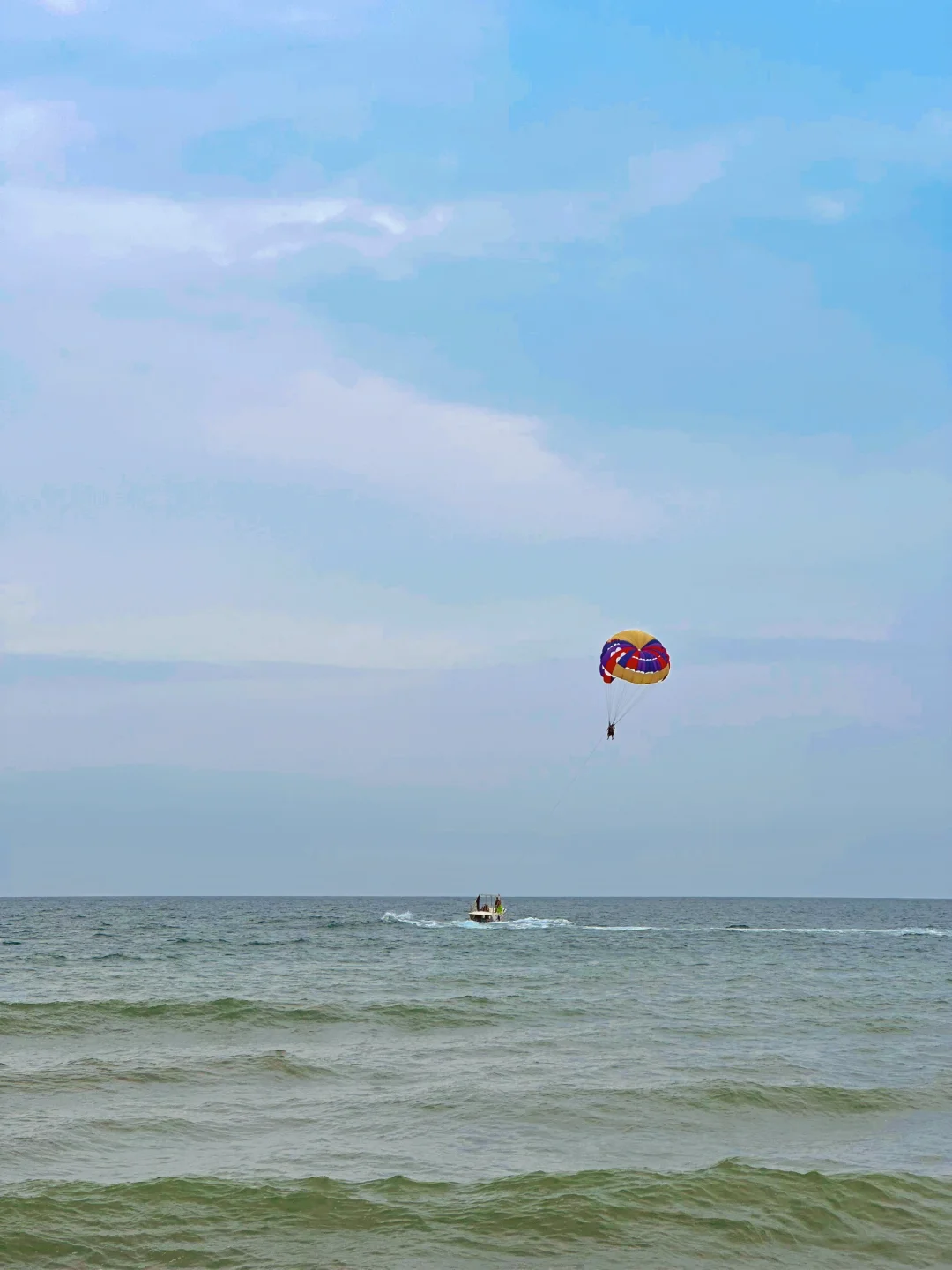 20米左右就有一个很大的海滩,这里的浪比较大一点,所以就比较适合玩一些海上项目,像是摩托艇,飞伞还有越野车都是可以玩的,建议是下午5:00⏰左右去玩,砍价两个人的话,花上一百左右就可以玩一个项目,摩托艇真的很好玩很刺激,10分钟左右,会有专业的教练带着你去漂,挺好玩的🥳