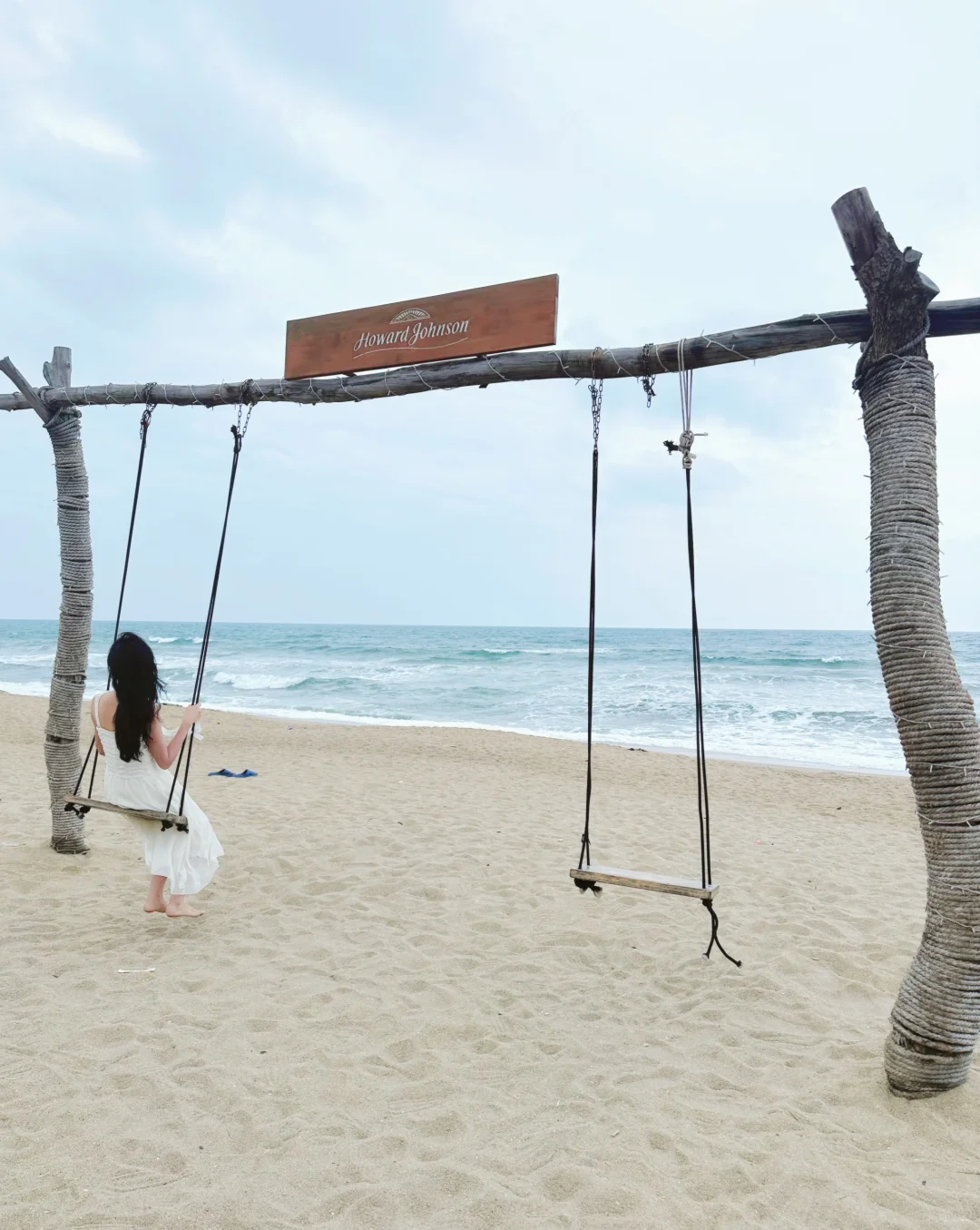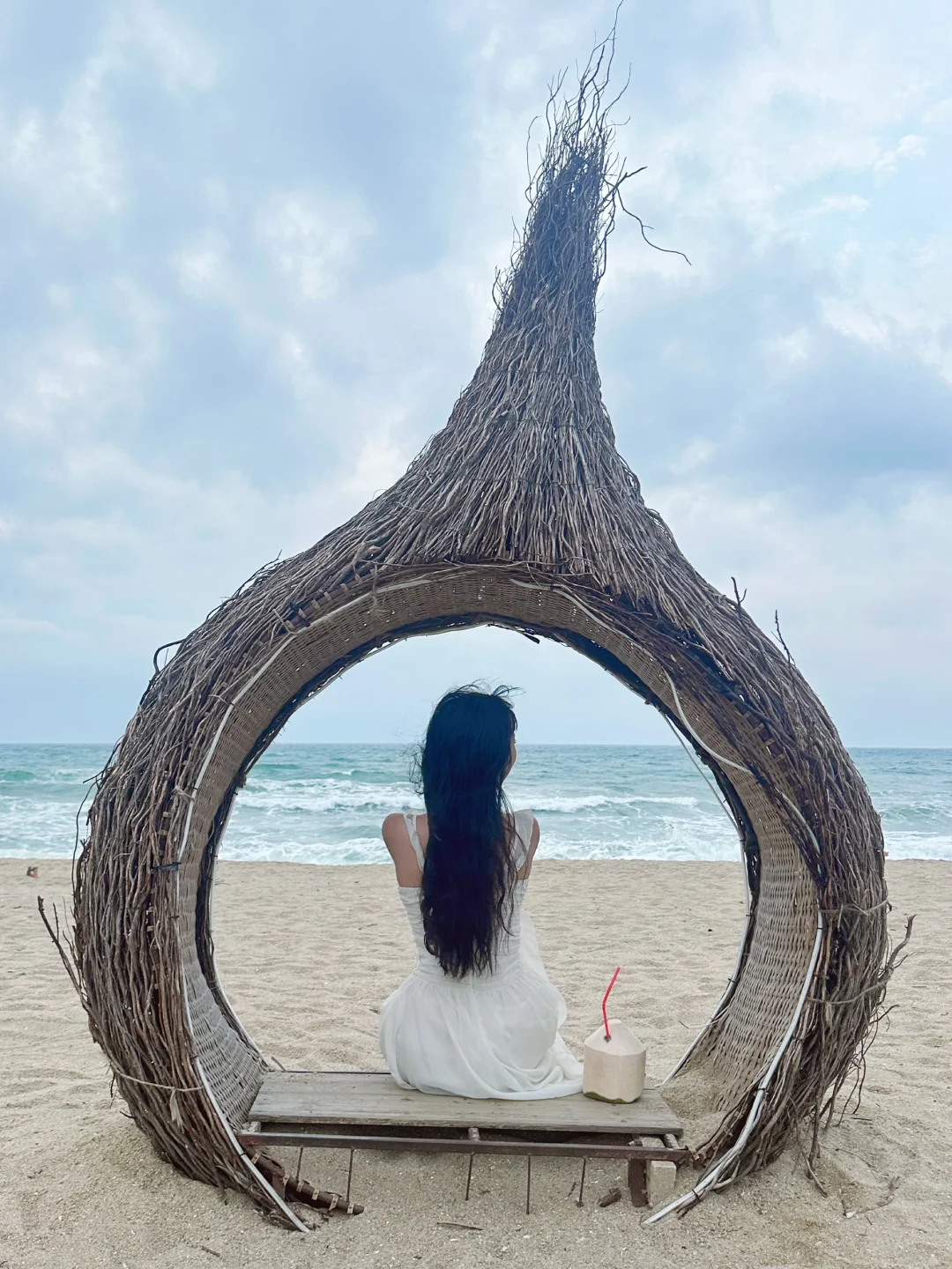 这片海域的话,浪会比较大一点,但是有秋千还有一些打卡拍照的,都是蛮出片的,沙子的话比较粗糙一点点,所以说带孩子的话建议还是去小径湾,双月湾沙子的确会比较硬一点点🥺