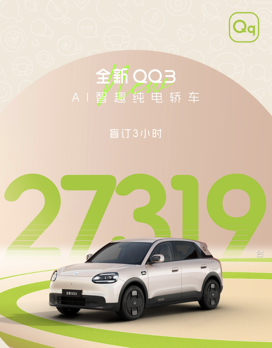 这份实力,也直接体现在盲订数据上,活动当晚全新QQ3盲订通道开启后,仅3小时便收获27319张订单,用实打实的市场反馈,证明了奇瑞QQ的品牌魅力依旧。