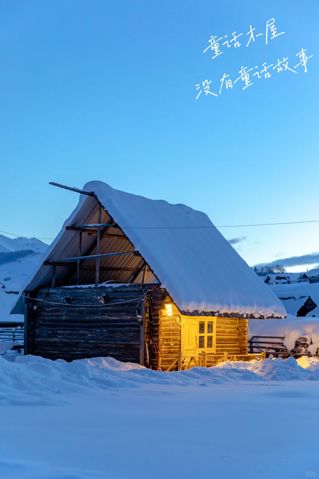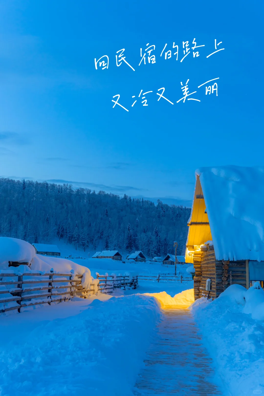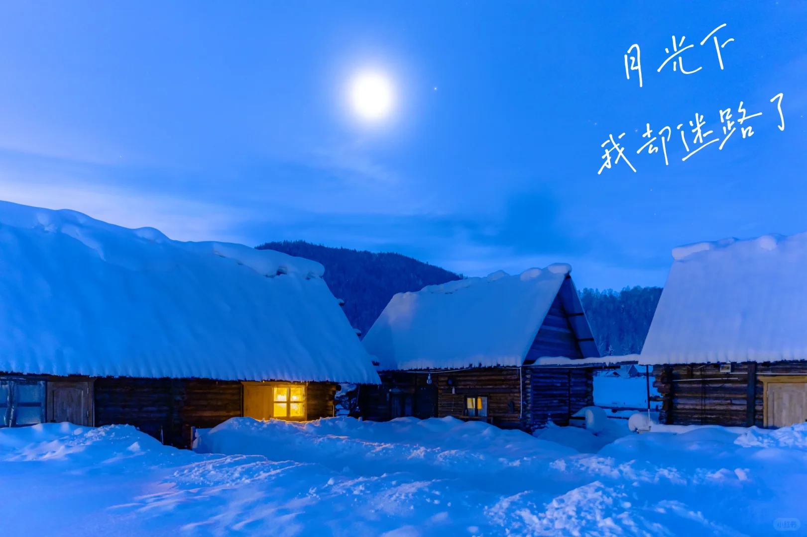 🎑夜晚篇:让我差点崩溃的晚上,那时禾木村只有两家在做餐饮,其他的店都没开业,选了一家吃了面条🍝,在超市买了瓶大瓶的矿泉水扛着回民宿,走着走着,这时手机就被冻关机📵了,再也没能打开,奔溃中一直摸黑寻找,天非常冷,游客也没几个,还有路边一直叫着的狗,除了雪就是一模一样的小木屋,非常非常难找!还好出门前没有把灯💡关掉,一路认着灯光寻找!