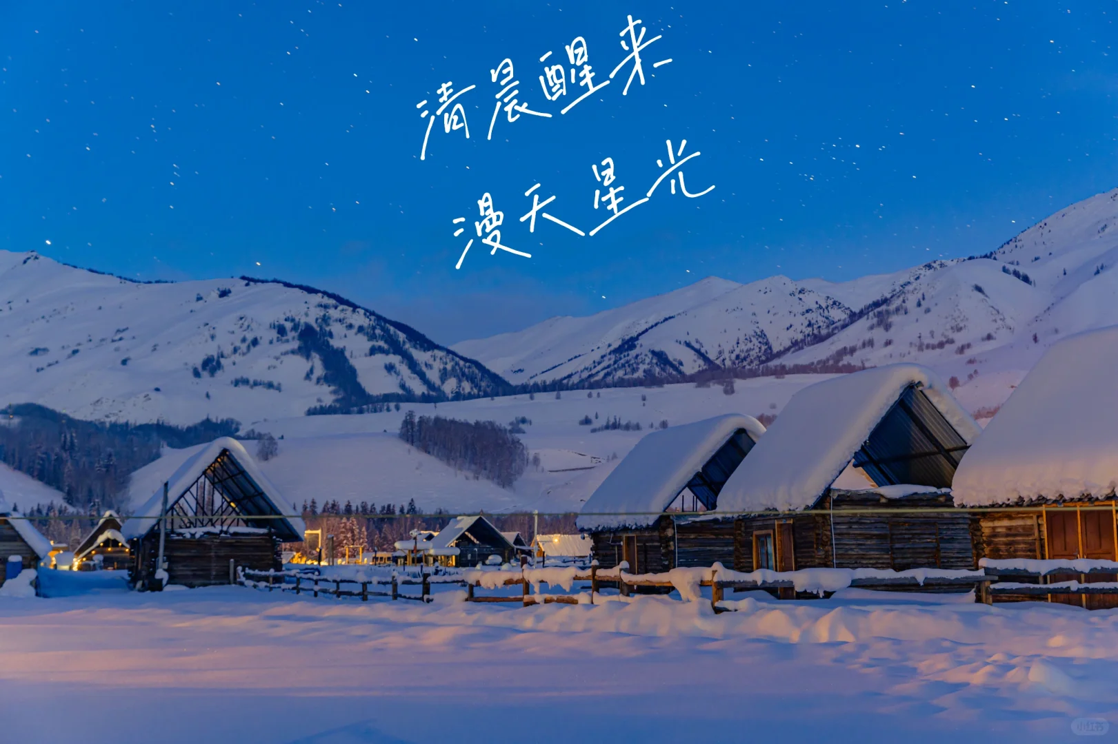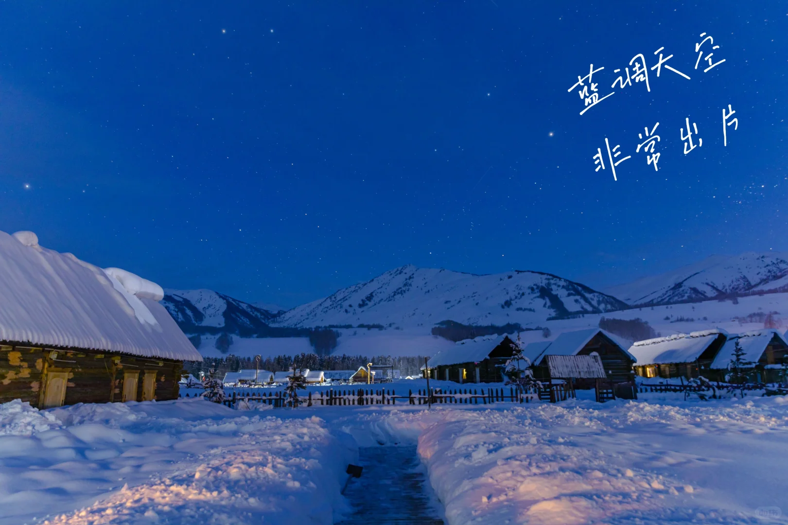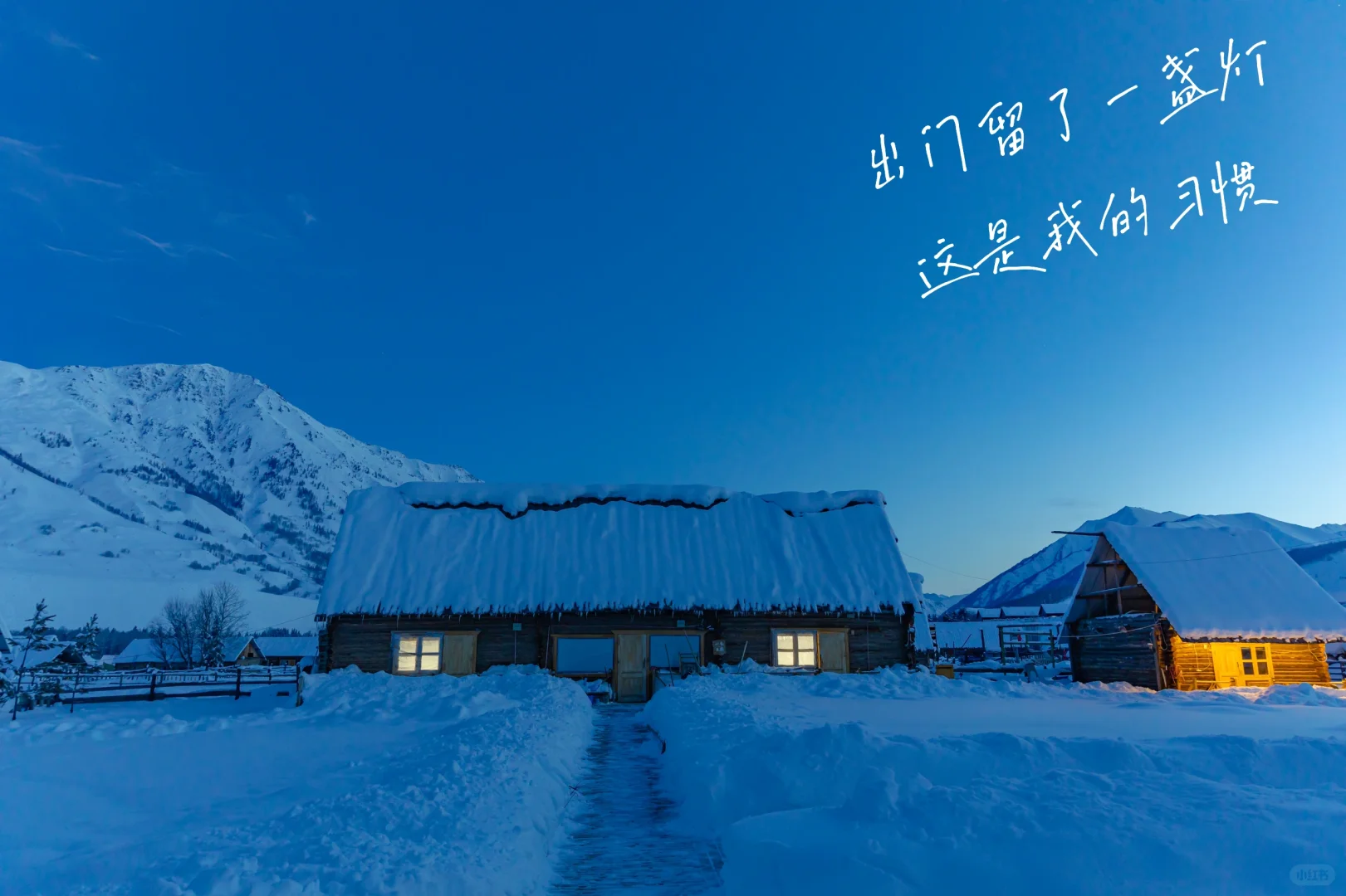 🎑夜晚篇:让我差点崩溃的晚上,那时禾木村只有两家在做餐饮,其他的店都没开业,选了一家吃了面条🍝,在超市买了瓶大瓶的矿泉水扛着回民宿,走着走着,这时手机就被冻关机📵了,再也没能打开,奔溃中一直摸黑寻找,天非常冷,游客也没几个,还有路边一直叫着的狗,除了雪就是一模一样的小木屋,非常非常难找!还好出门前没有把灯💡关掉,一路认着灯光寻找!