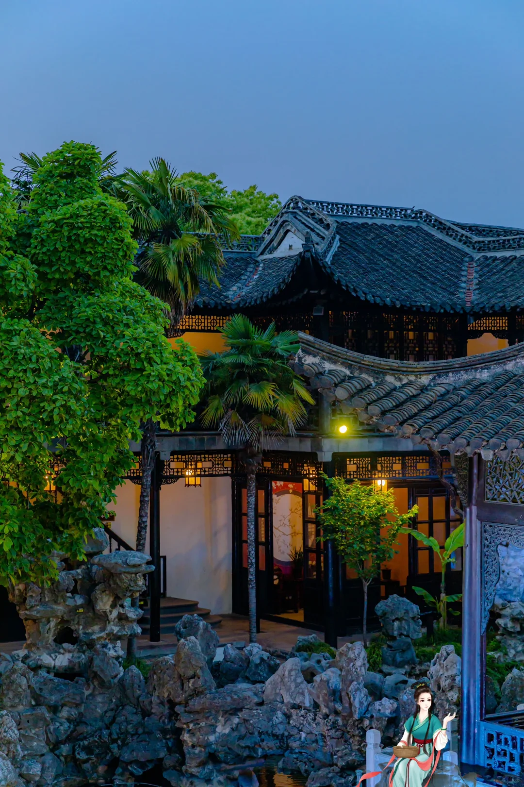 白天的何园人太多了,建议晚上进去,夜色下的何园有一种宁静的美,古人这个时候应该差不多要睡了吧! * 夜场七点就可以进了,晚上也会有表演可以看,蓝调下的何园,微黄的灯光下更有古风气息!