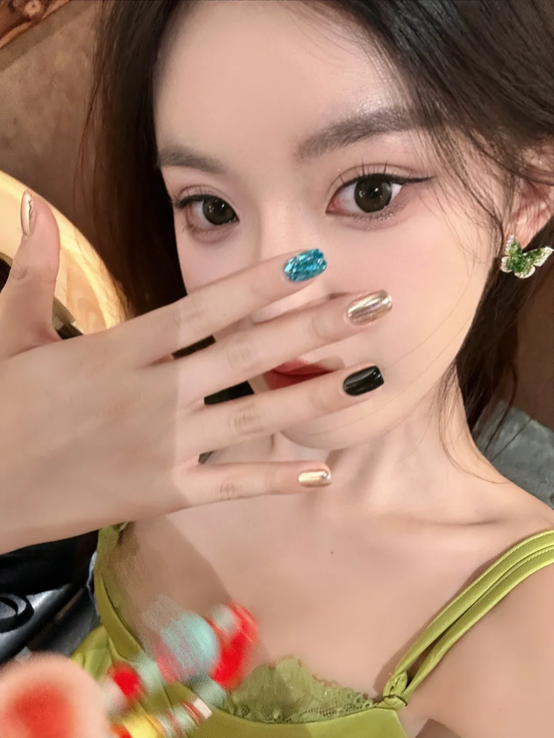 巨巨巨巨显白!湖水蓝亮片很特别 超适合夏天的美甲💅本甲做也很好看 最重要的是出片