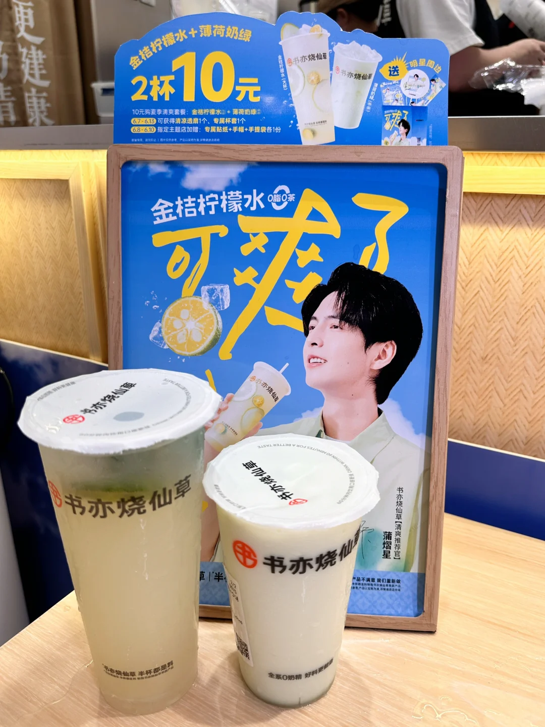 书亦烧仙草和蒲熠星出联名周边啦‼️ 我看看是谁还没有心动 书亦你太会啦!!! 金桔柠檬水🍋+薄荷奶绿2️⃣杯才🔟💰 真的太划算了‼️‼️‼️ 和蒲熠星一起喝书亦烧仙草啦~ 快和蒲熠星一起喝书亦·畅享清凉一夏吧🥰