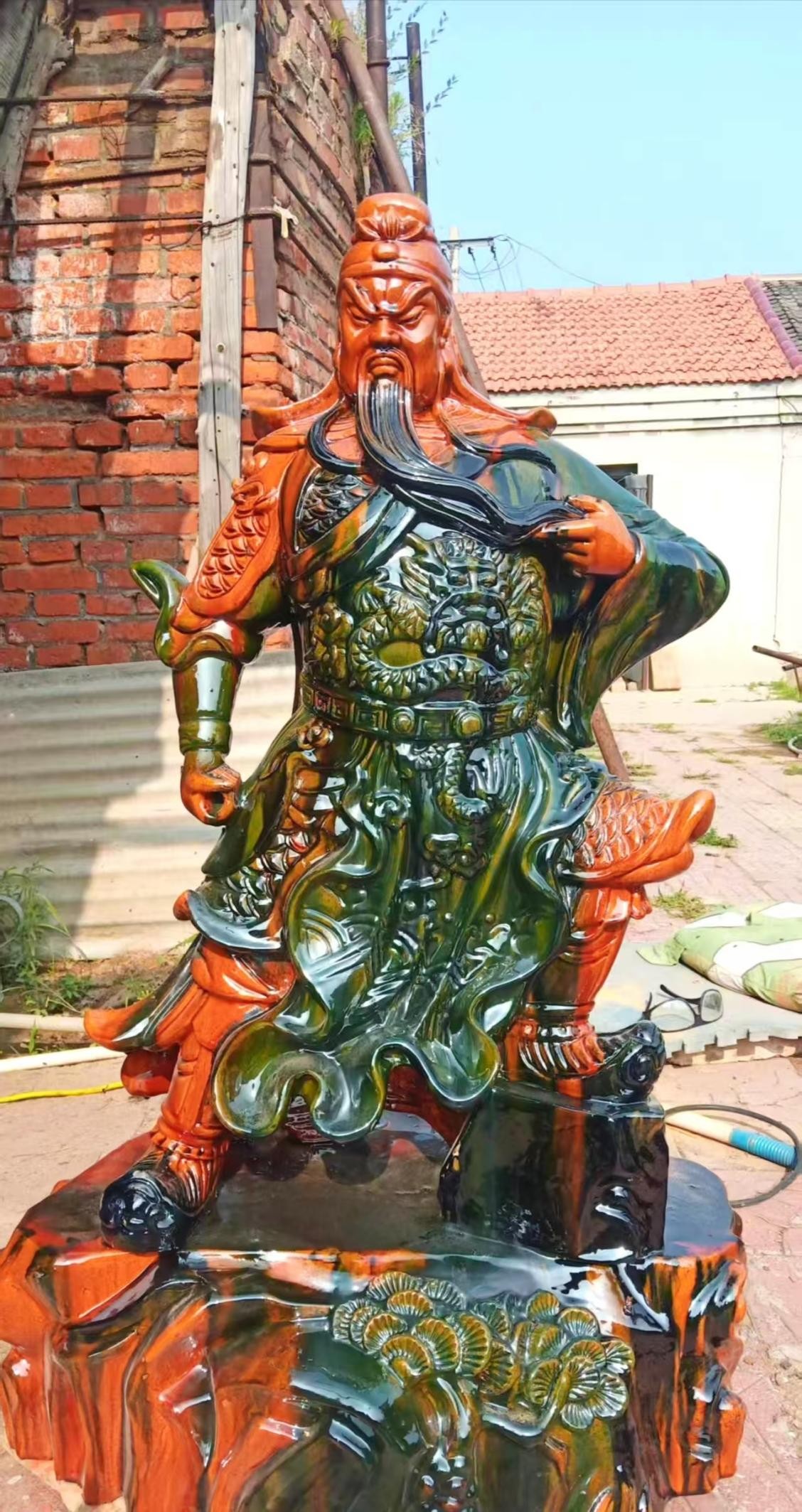 还有那尊威风凛凛的关公像,战袍飞扬,长髯飘逸,不怒自威。每一处衣褶的流转,每一丝铠甲的纹理,都经过了反复的揣摩与塑造。这不仅是技艺的展现,更是对忠义精神的致敬,是将历史与信仰,凝注于一抔泥土之中。