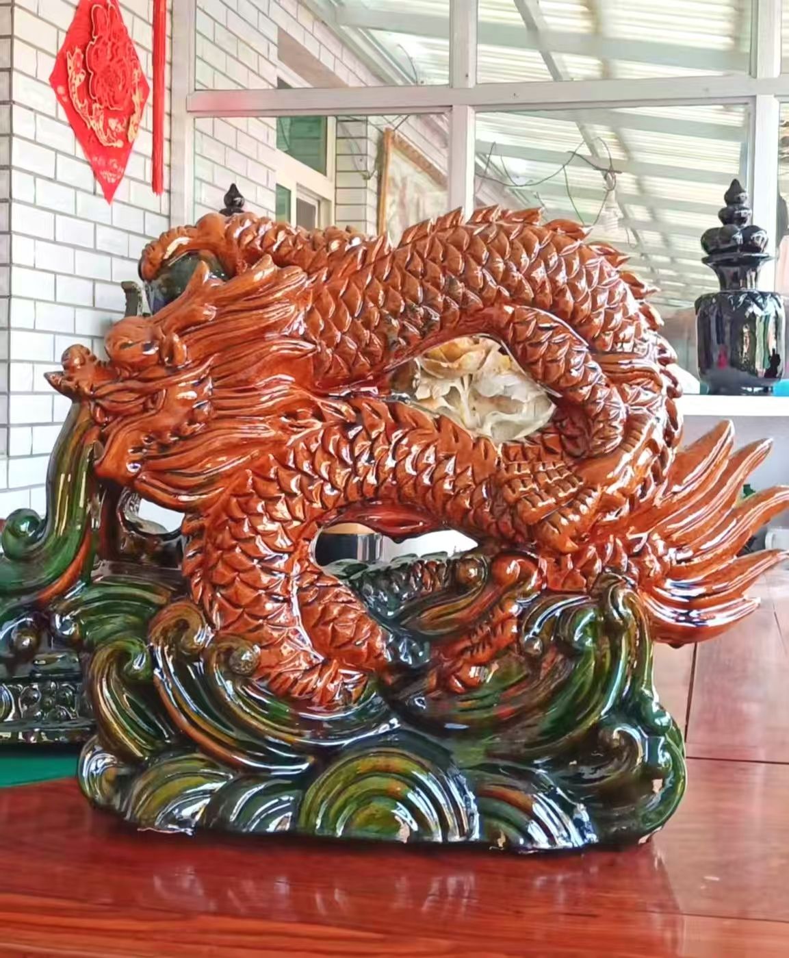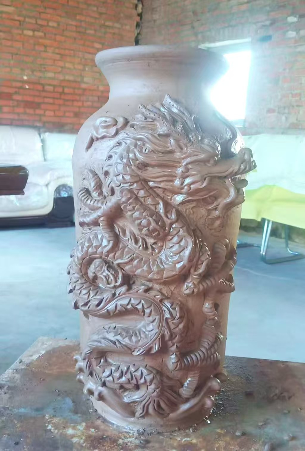 就像眼前这尊盘龙陶瓶,龙首昂扬,龙爪遒劲,每一片鳞片都清晰分明,仿佛下一秒就要破壁而出。这并非一蹴而就,而是匠人一刀一刀、一凿一凿,在湿软的泥胎上精心雕琢而成。每一道刻痕都凝聚着专注,每一处起伏都饱含着情感。没有模板,没有复制,每一刀下去都是不可复制的瞬间,每一件作品都是世间独一的孤品。