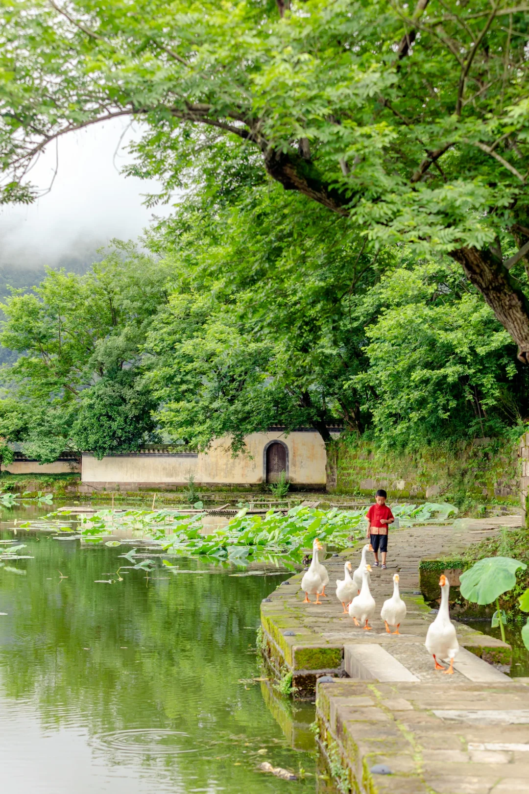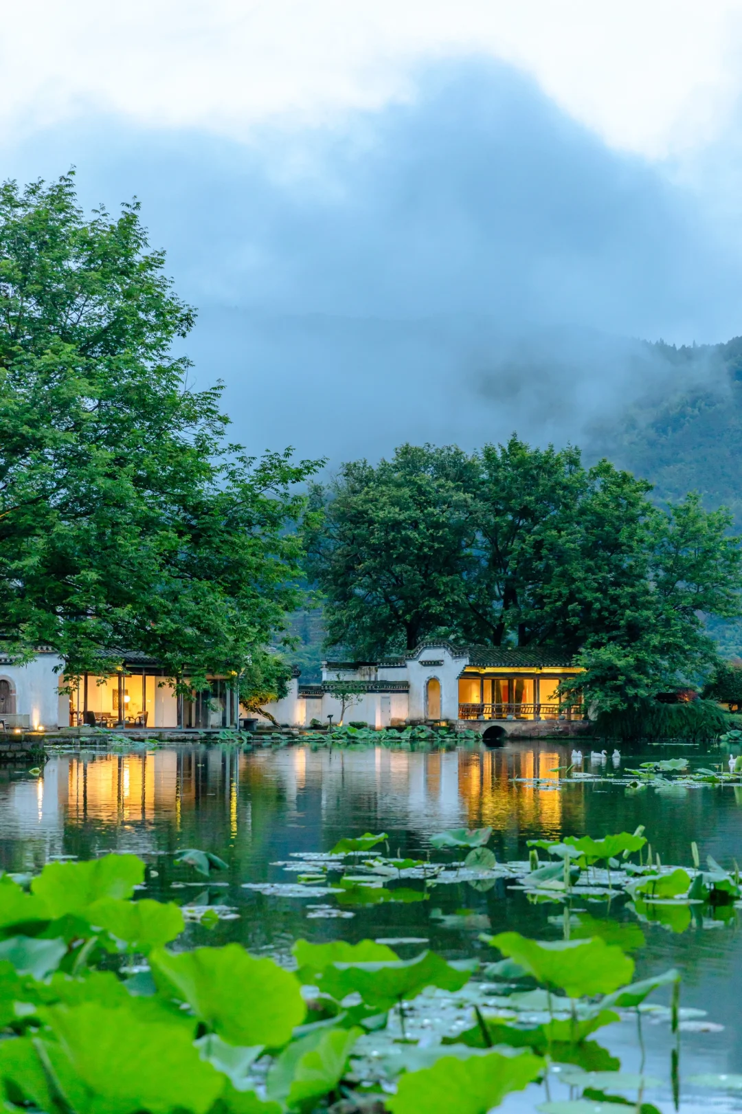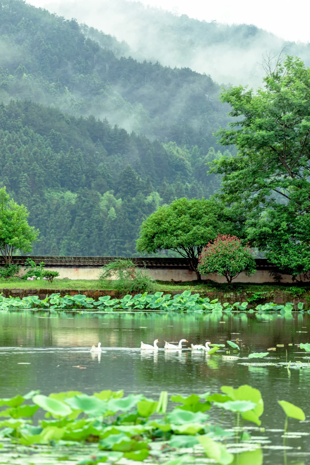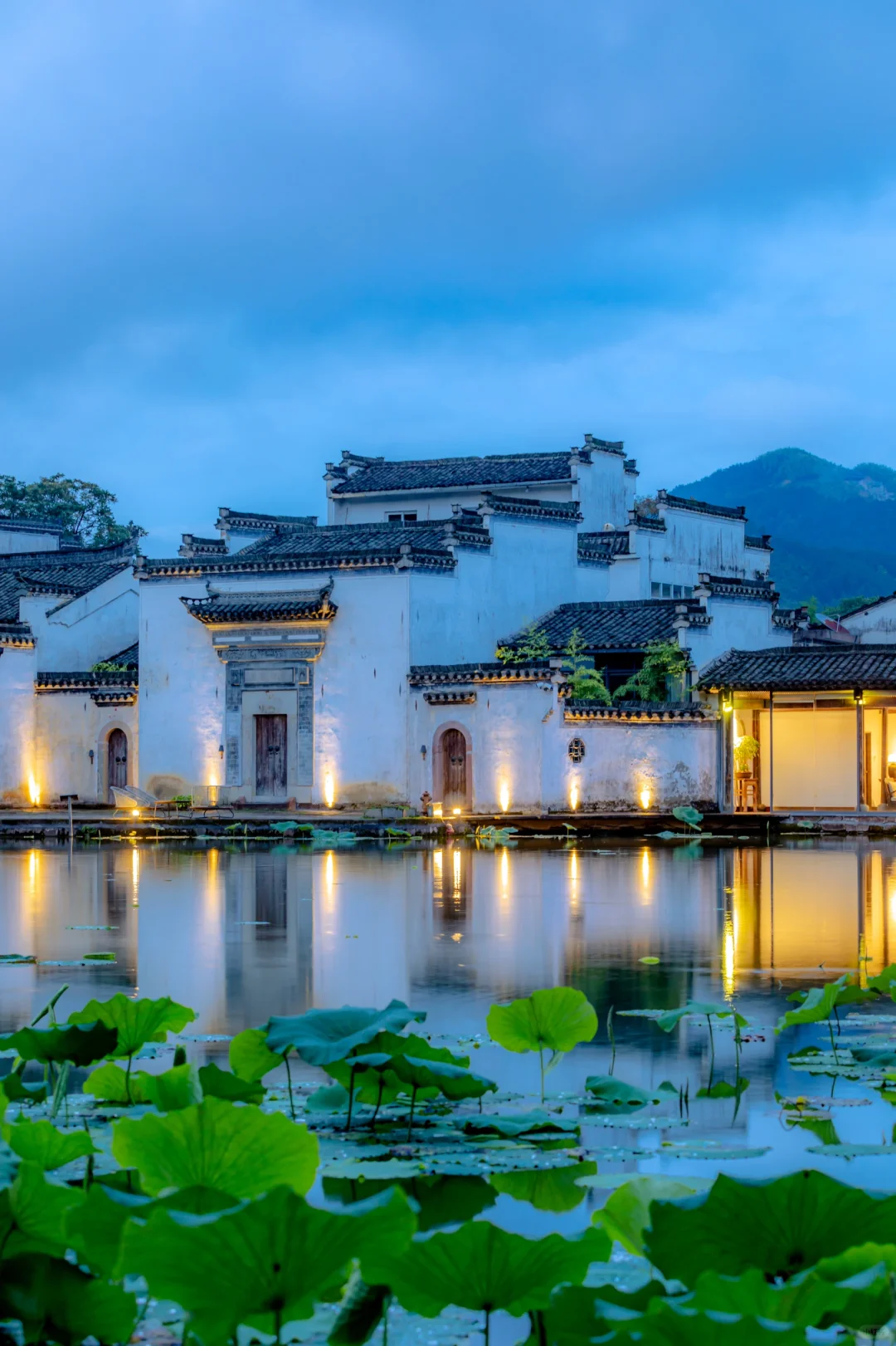 雨中的徽州,斑驳的墙壁,远山弥漫的雾气,拍出来就是一幅泼墨山水画!夜晚亮灯的时候,氛围感特别好! * 📍:呈坎古村落 🚝:黄山北站,转公交🚌或者打车二十分钟 * 呈坎古村落一半烟火一半风景,里面很多古建筑遗址,拍照机位都是集中在湖四周,即晒秋广场,另外还有环秀桥附近,雨中的呈坎古村落很值得!