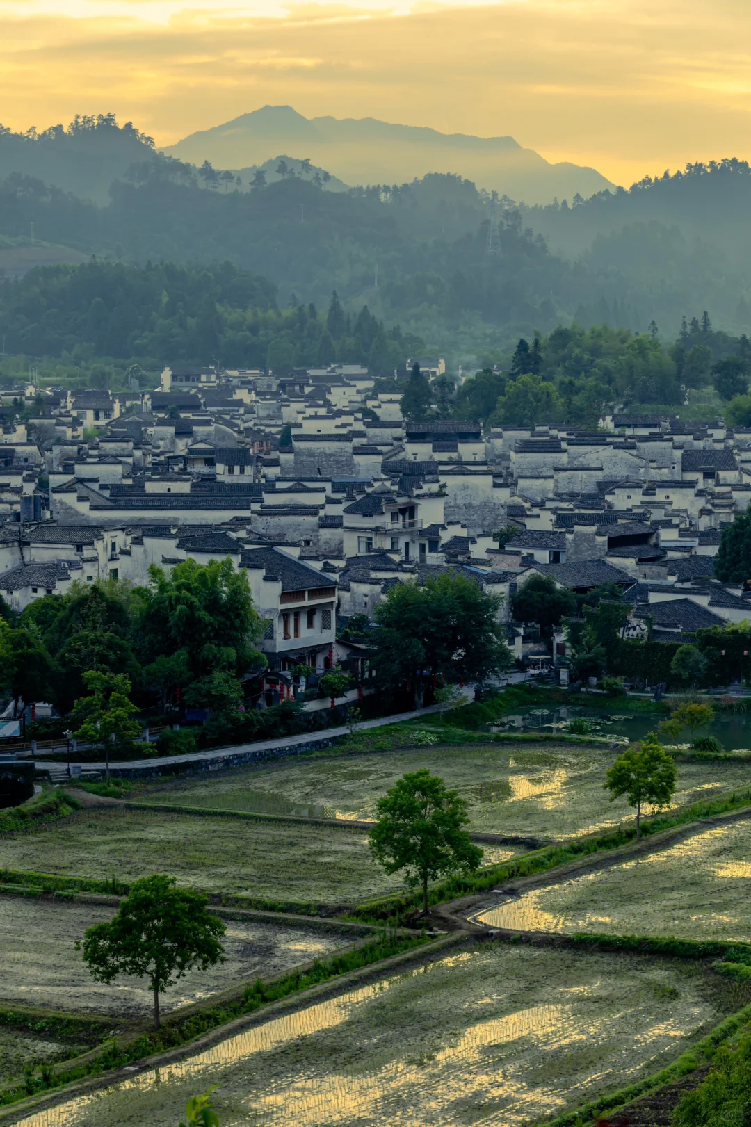 这是我好久都没有再体验过的古村落生活啊,一早醒来,听着蝉鸣声、鸟声、微风吹过树叶的声音,田野里农民的交谈声,让我想起了小时候在老家的情景,也是这样的,很怀念那种童年的日子📆! * 📍:安徽黄山市西递古村落 🚝:黟县东站▶️转公交🚌十分钟即到 * 西递真的满足了我所有的期待,一早起来登高远眺,看村落里的炊烟袅袅,阳光☀️打在斑驳的墙壁,站在亭子里往外拍,就好像是一幅画! *