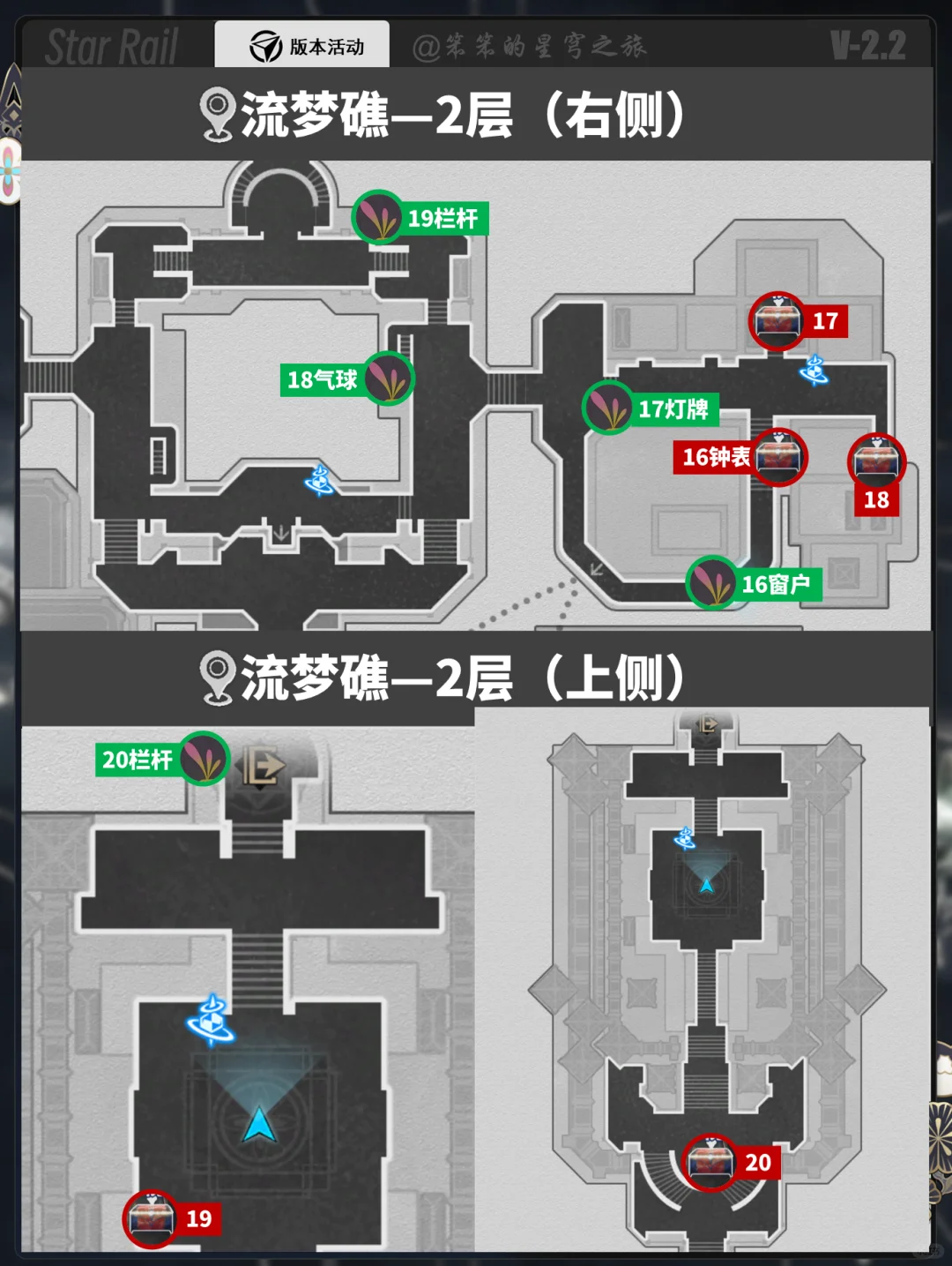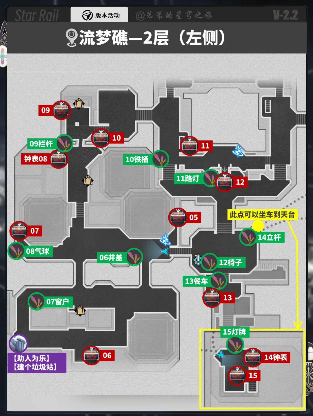 🐱大家好,我是笨笨 今天给大家带来的是2.2新地图「流梦礁」 所有资源的点位攻略 包含宝箱、垃圾桶、小鸟和扑满 还没拿全的赶紧来抄作业吧