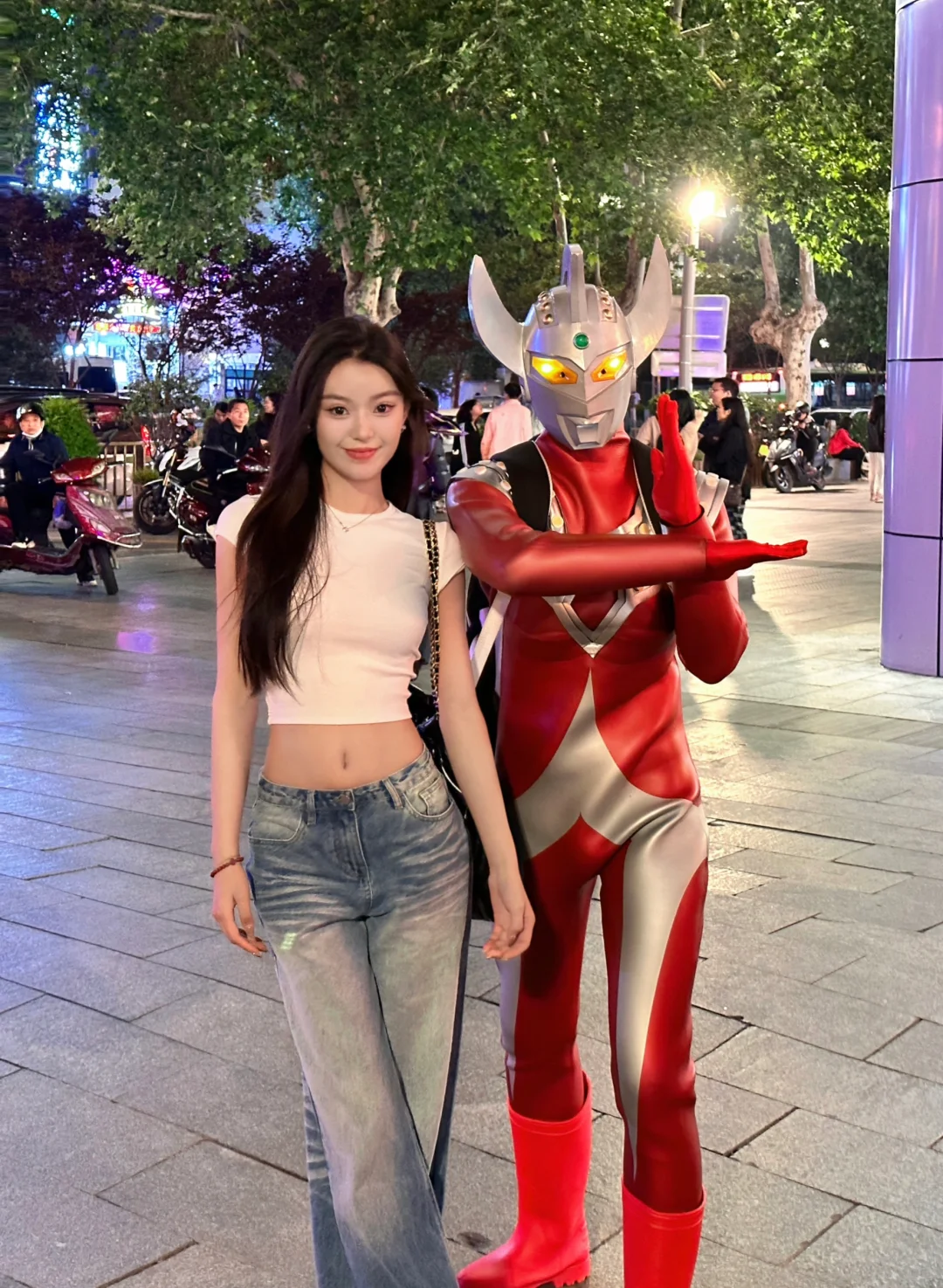 大步流星走上前说 赛文你好可以和你合影吗 然后奥特曼说“我是泰罗”。。 傻傻分不清自己的童年了 赛文、赛罗、迪迦哈哈哈 吃个饭小肚子都出来了 所以只能把背景p歪了不好意思。。。[点赞R][种草R][猪头R]