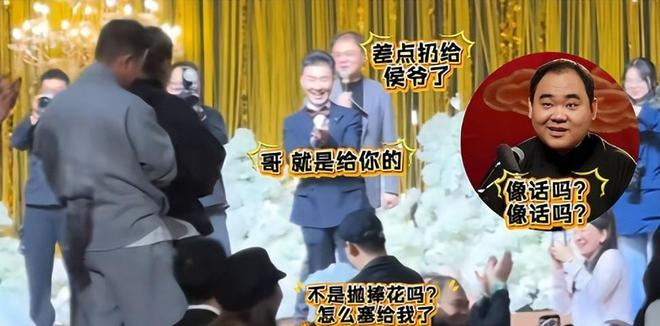 更有意思的是,接连两场被催婚的郭麒麟,却偏偏接到了新娘的手捧花。