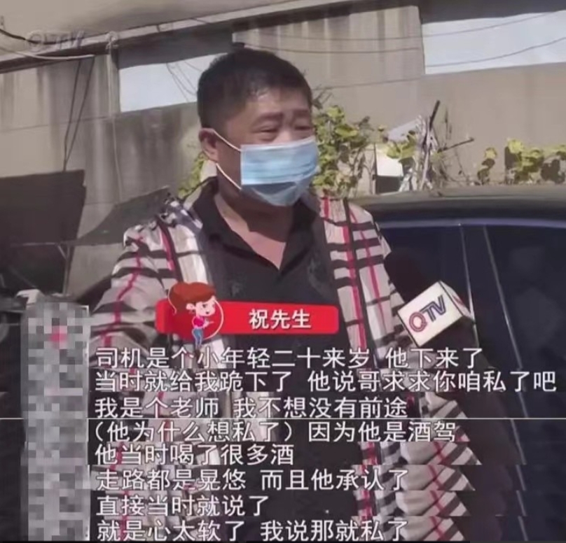 侯某向祝先生表示,自己确实是酒驾,走路都晃悠。祝先生一见对方拿出下跪的诚意,祝先生反而不好意思起来,竟同意侯某私了的想法。