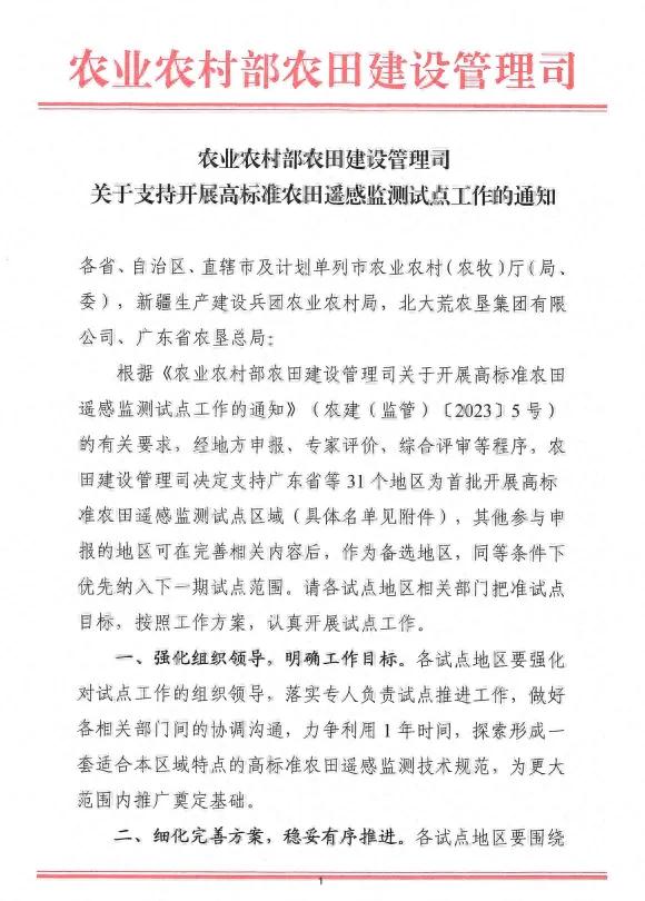 试点工作推动技术深度融入:2023年8月,农业农村部农田建设管理司发布《关于支持开展高标准农田遥感监测试点工作的通知》,提出综合采取以卫星遥感为主,高空航拍和低空无人机摄像为辅的方式,提升监管效能。此举推动了遥感技术从“可用”向“好用、常用”转变。