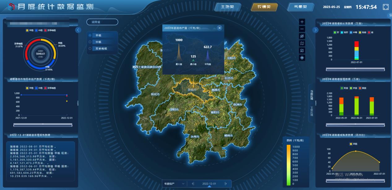 核心应用:实现了全省主要作物种植面积的自动提取、空间分布制图、长势动态监测和产量趋势预测。