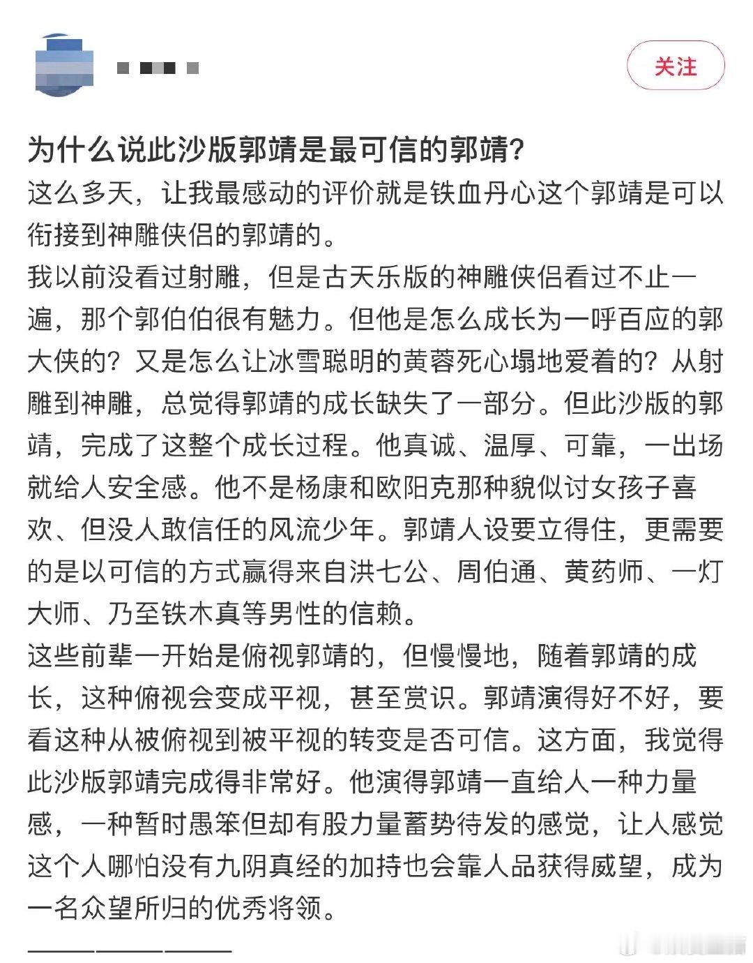 #此沙郭靖的武侠江湖记录#真的是让我们感受到对于郭靖这个角色塑造用心,不得不说对于这个角色塑造真的是非常的形象,而且真的是代入感十足,真的很有江湖侠义的感觉。