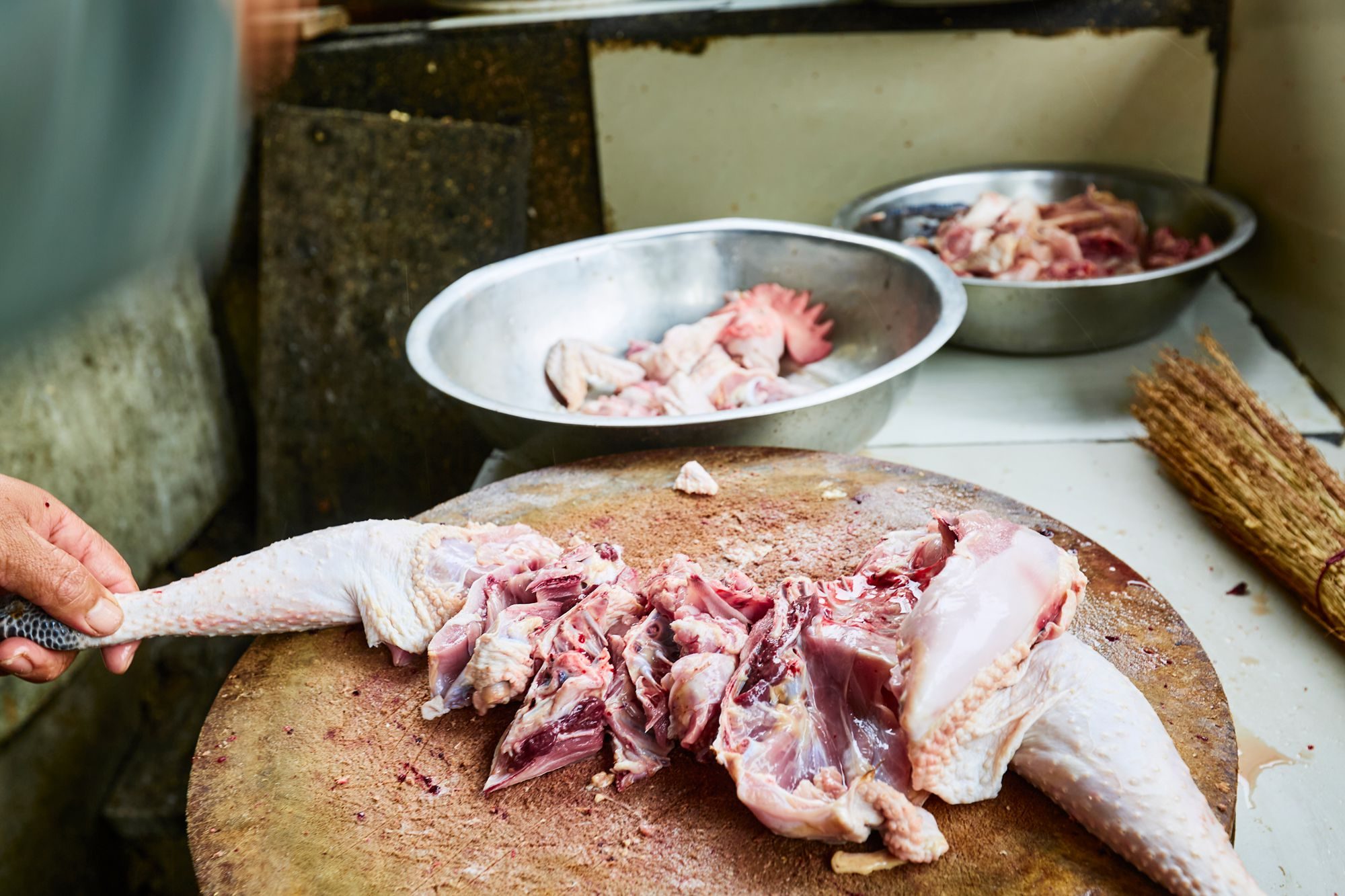 另一个主角——鸡肉的选择同样容不得马虎,当地人用散养两到三年的土鸡现宰现做,剁成大小均匀的块状,做出的鸡肉肉质紧实,富有弹性,吃上一口回味无穷。