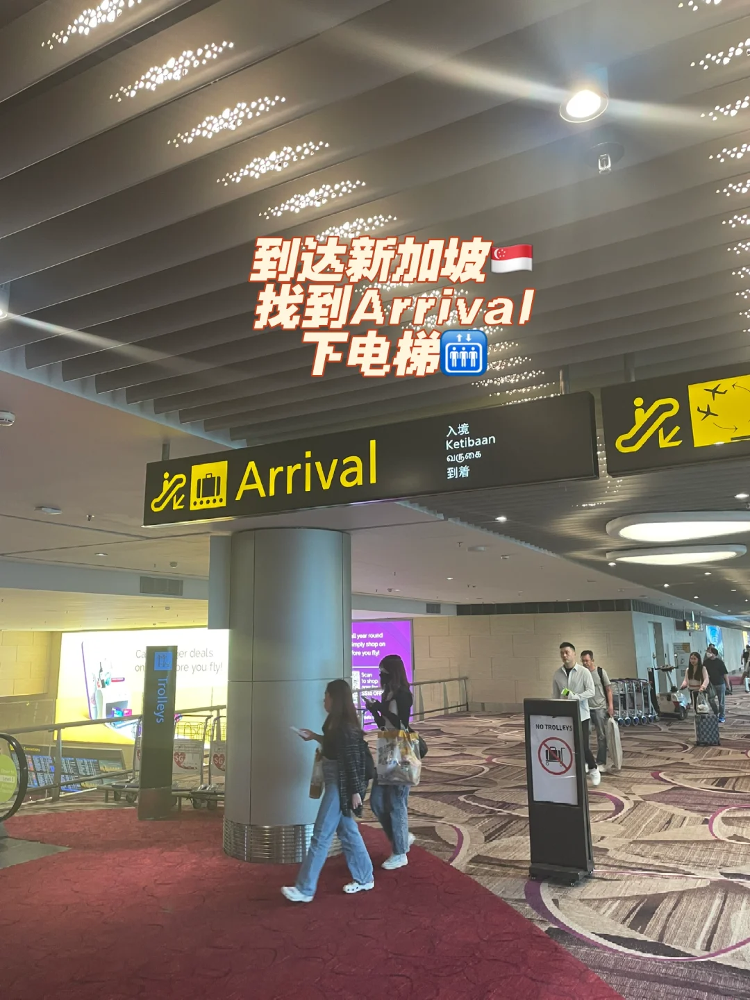 5️⃣入境新加坡🇸🇬后,现在是自助入关,按照指示把护照照片那一信息页往下⬇️放在扫描区,过了第一道门后再按右手指纹、刷脸,就可以过第二道门了,十秒丝滑入境,然后就可以去取你的行李啦!
