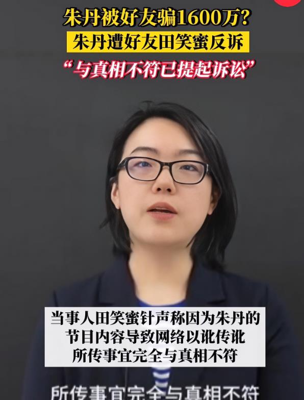 《朱丹被好友骗1600万?田笑蜜回应:所传事宜完全与真相不符》,半岛都市报,2023-12-18发布