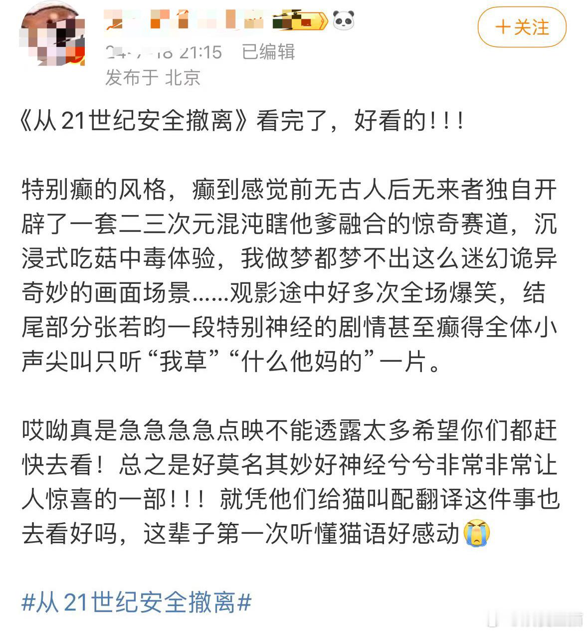 #第一次见像21世纪这种新鲜的影评#《从21世纪安全撤离》真的好癫,这样的审美也