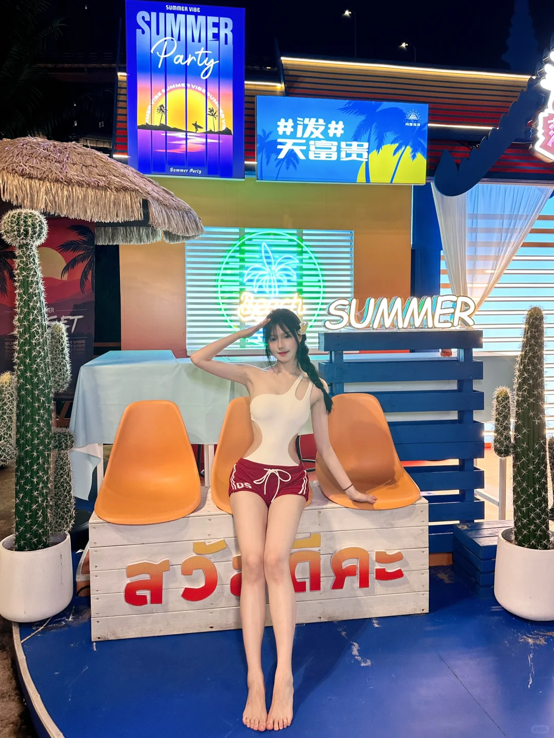 夏天消暑去玛雅海滩泰Style泼水节!泰好玩了 在重庆也过上了泰式泼水节啦~ 进门就被泰式主题水乐园狠狠硬控住了 整个乐园都炒鸡出片 泳衣大片直接拿捏😍 发现这些超绝的出片点: 芭裏芭气泰chill沙滩、宝贝水城的小鲨鱼…最喜欢的是tutu车落日天台,王+2打卡过的同款网红水母酒吧!随手一拍都很好看。还有泰浪漫驿站,泰式装扮,适合休息放松,晚上坐着吹吹晚风不要太chill。
