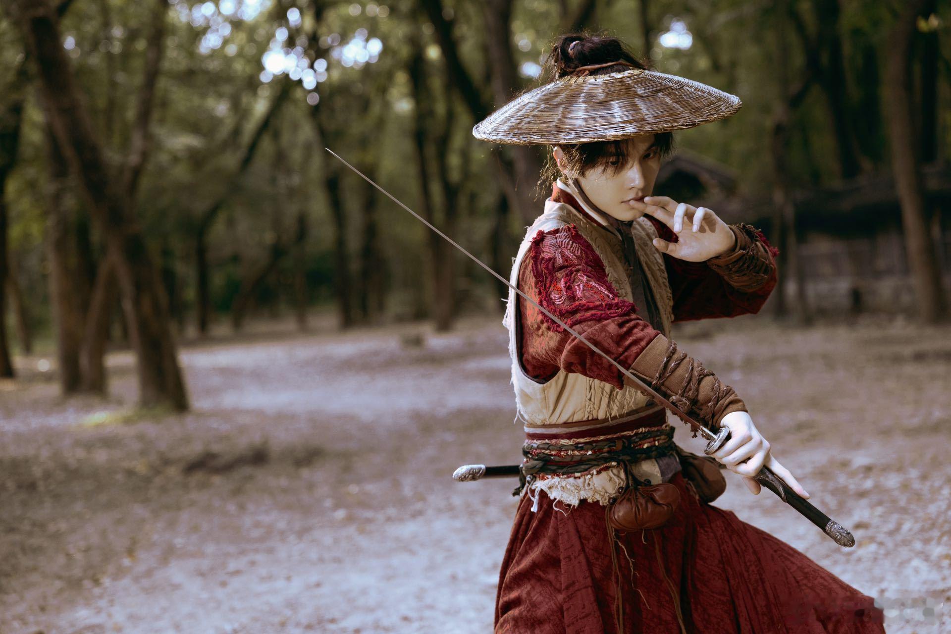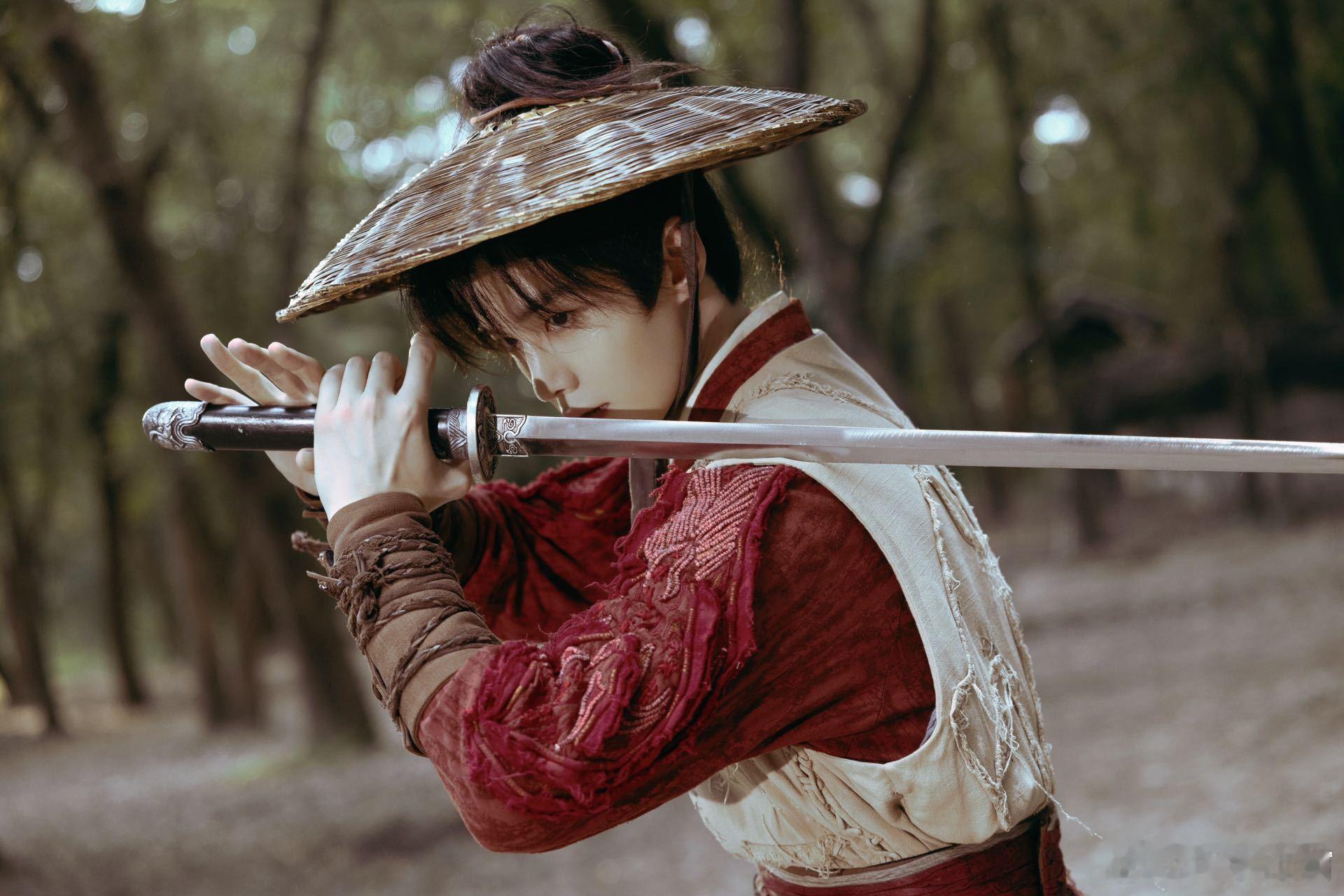 #何与布衣斗笠就是硬帅#这造型真的是没有技巧就是硬帅,干净利落的动作让他看起来更加的有少年感了,一身红衣,一把长剑,江湖气息拉满了