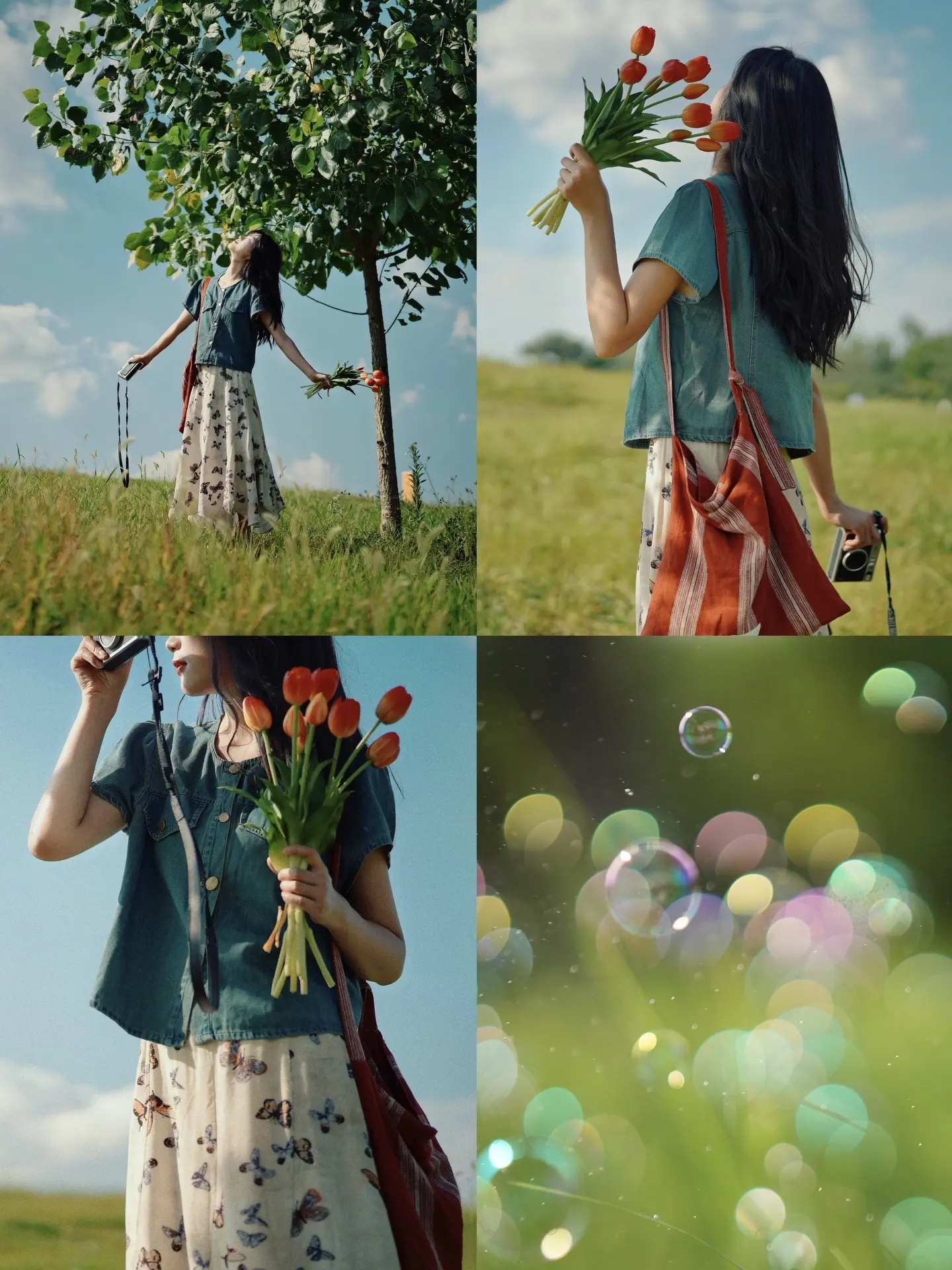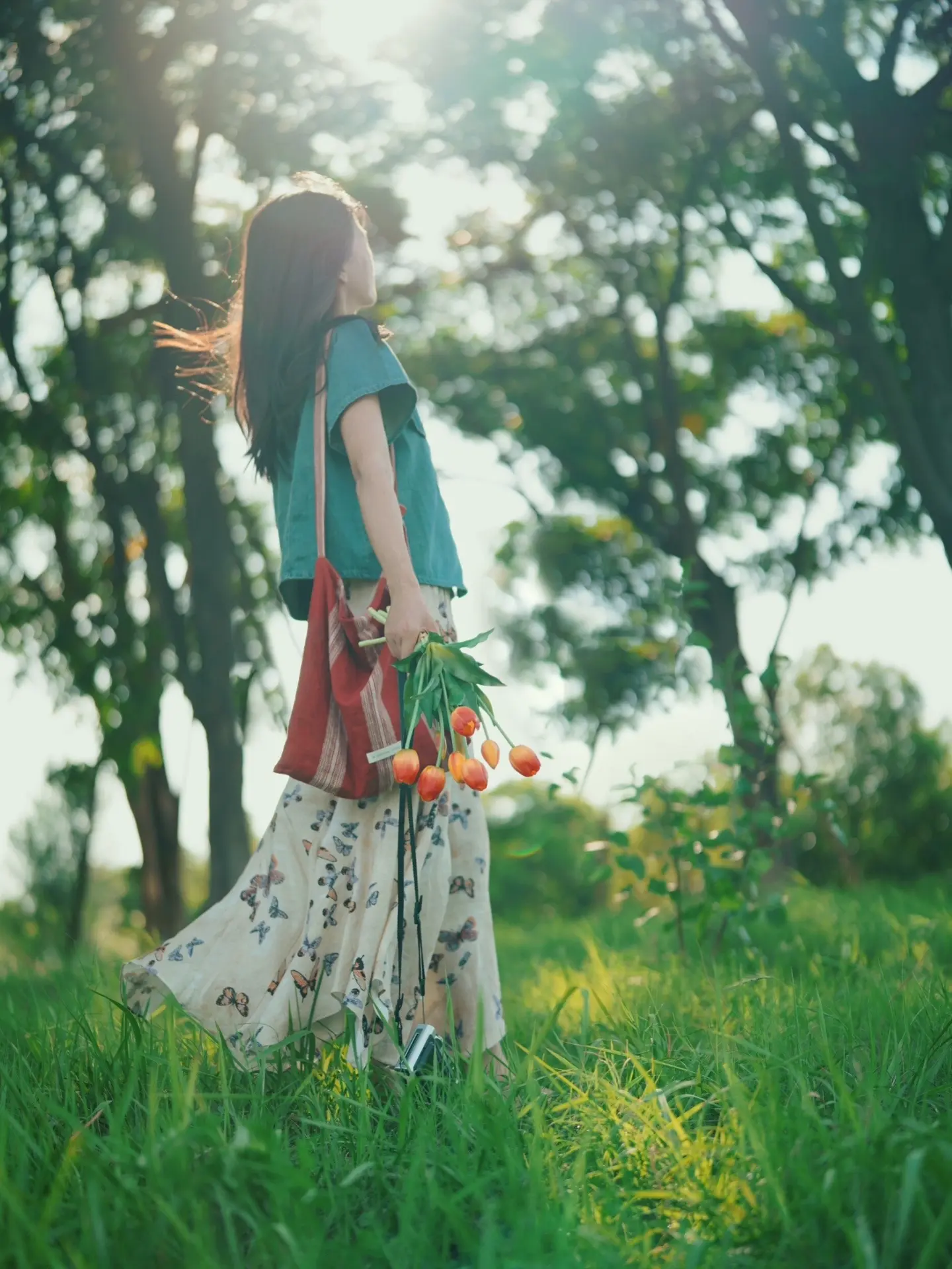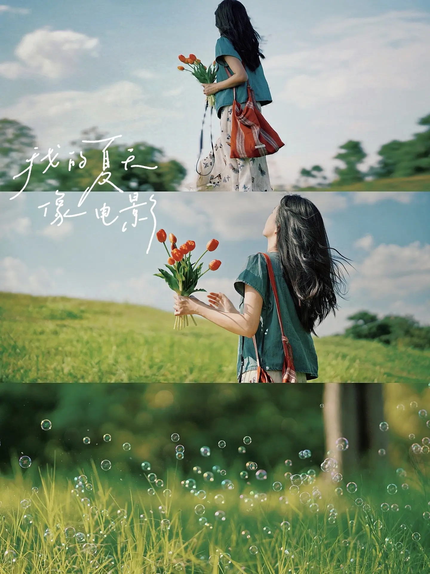 文艺氛围感拍照|盛夏日记💙☁️📷。夏天公园的草坪和小山坡 可以拍到...