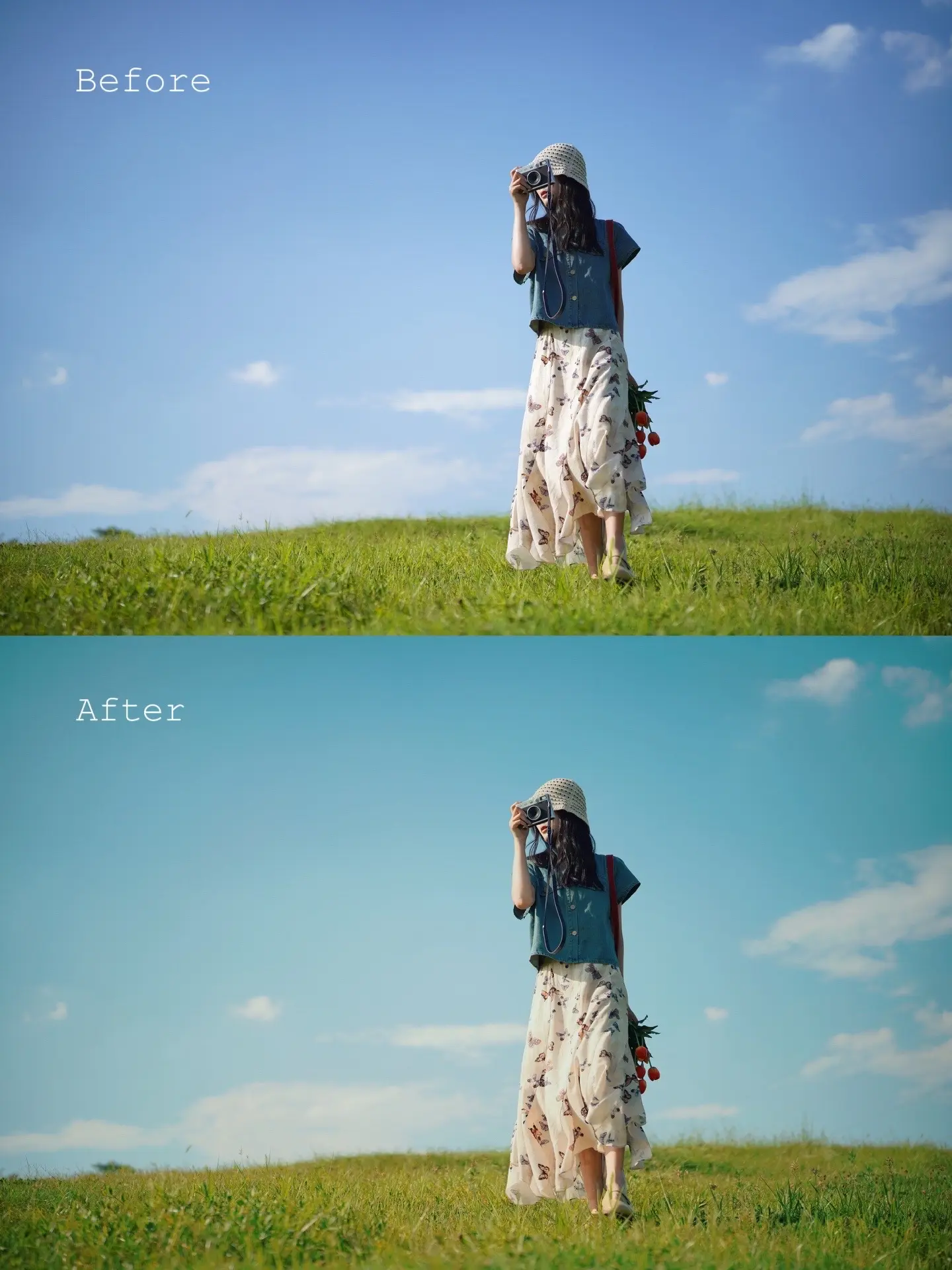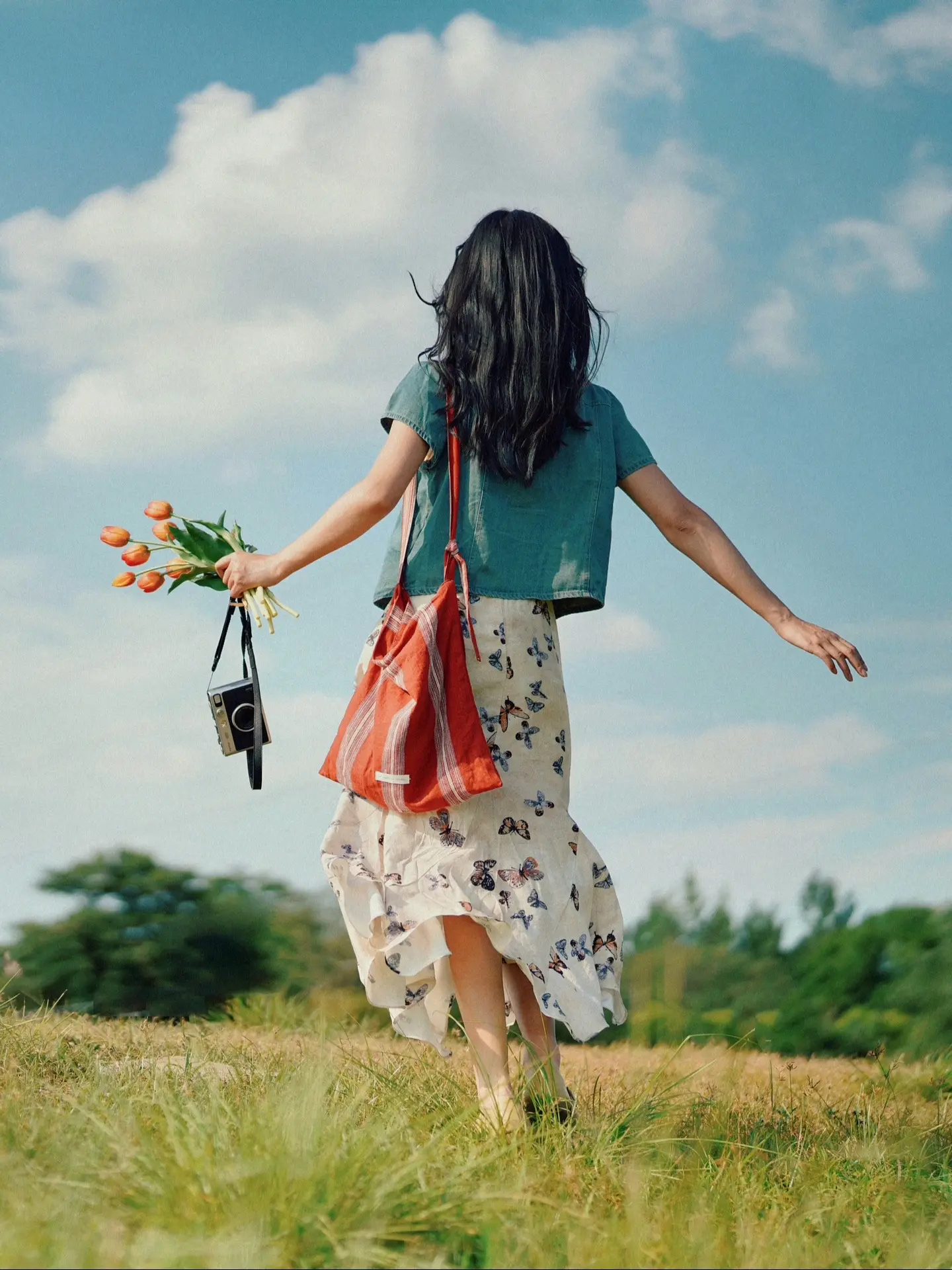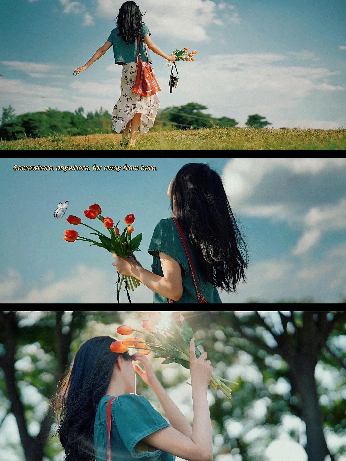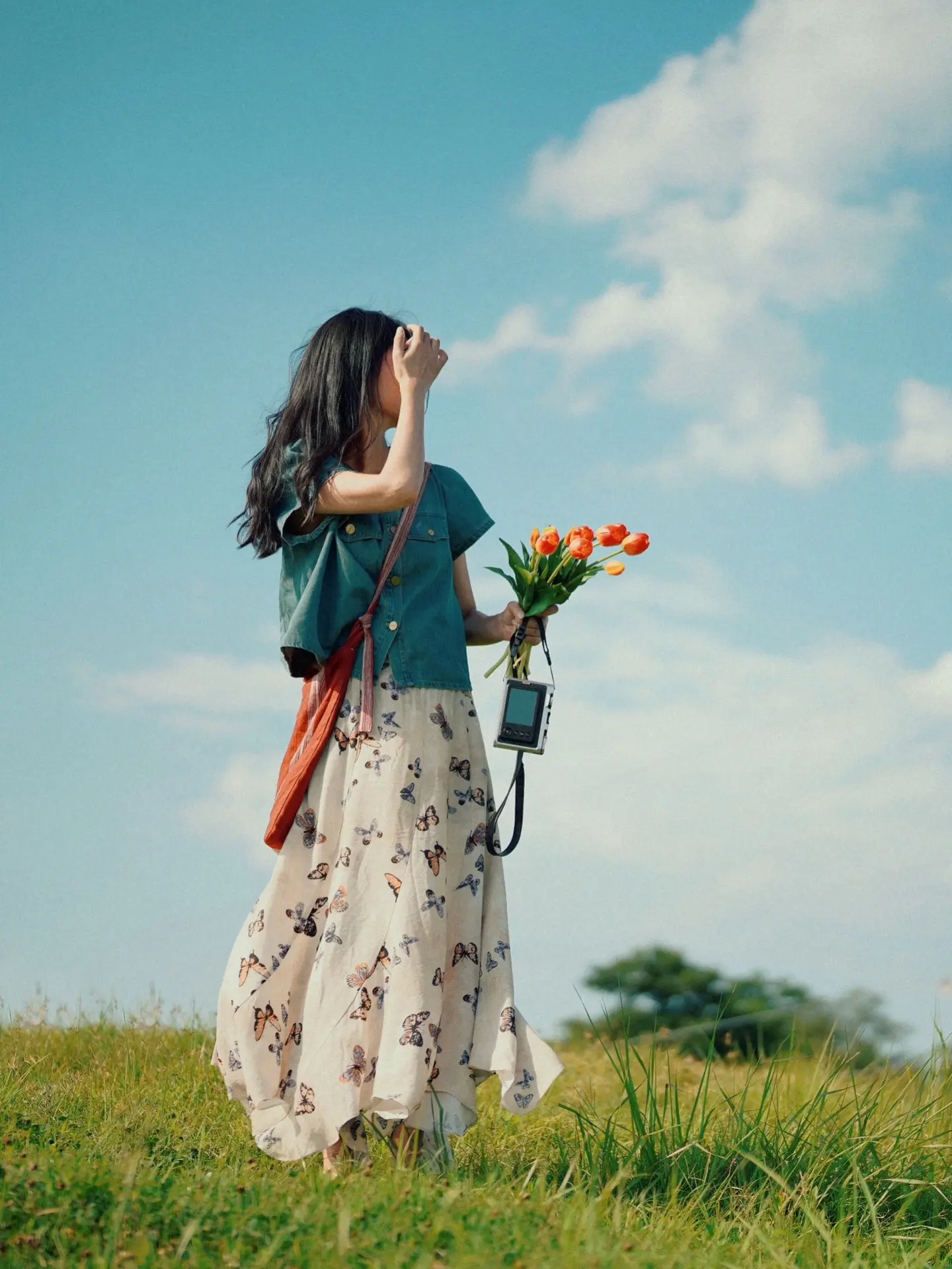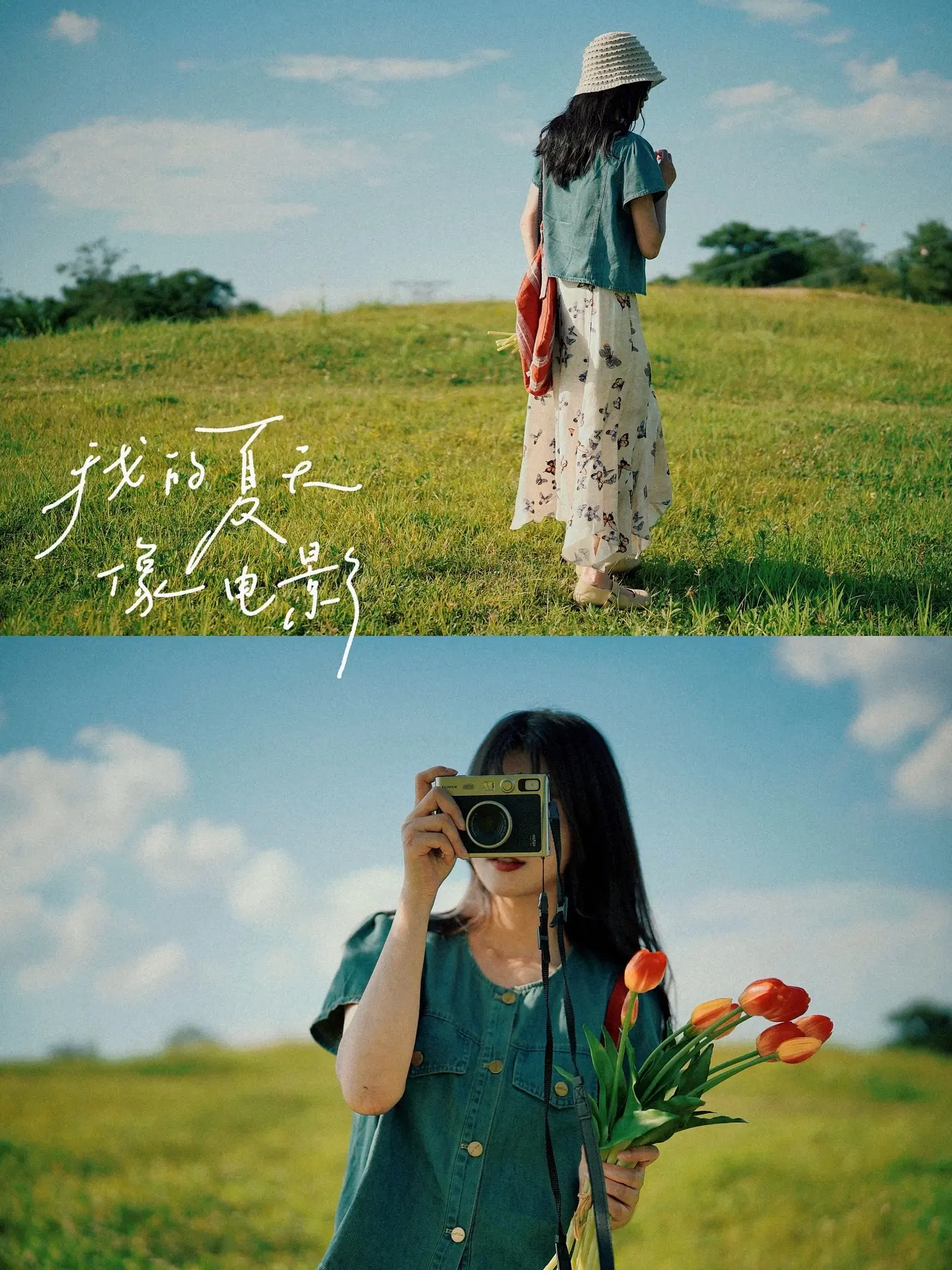 文艺氛围感拍照|盛夏日记💙☁️📷。夏天公园的草坪和小山坡 可以拍到蓝天和云朵 用胶片电影感滤镜记录盛夏 🤍💙🧡