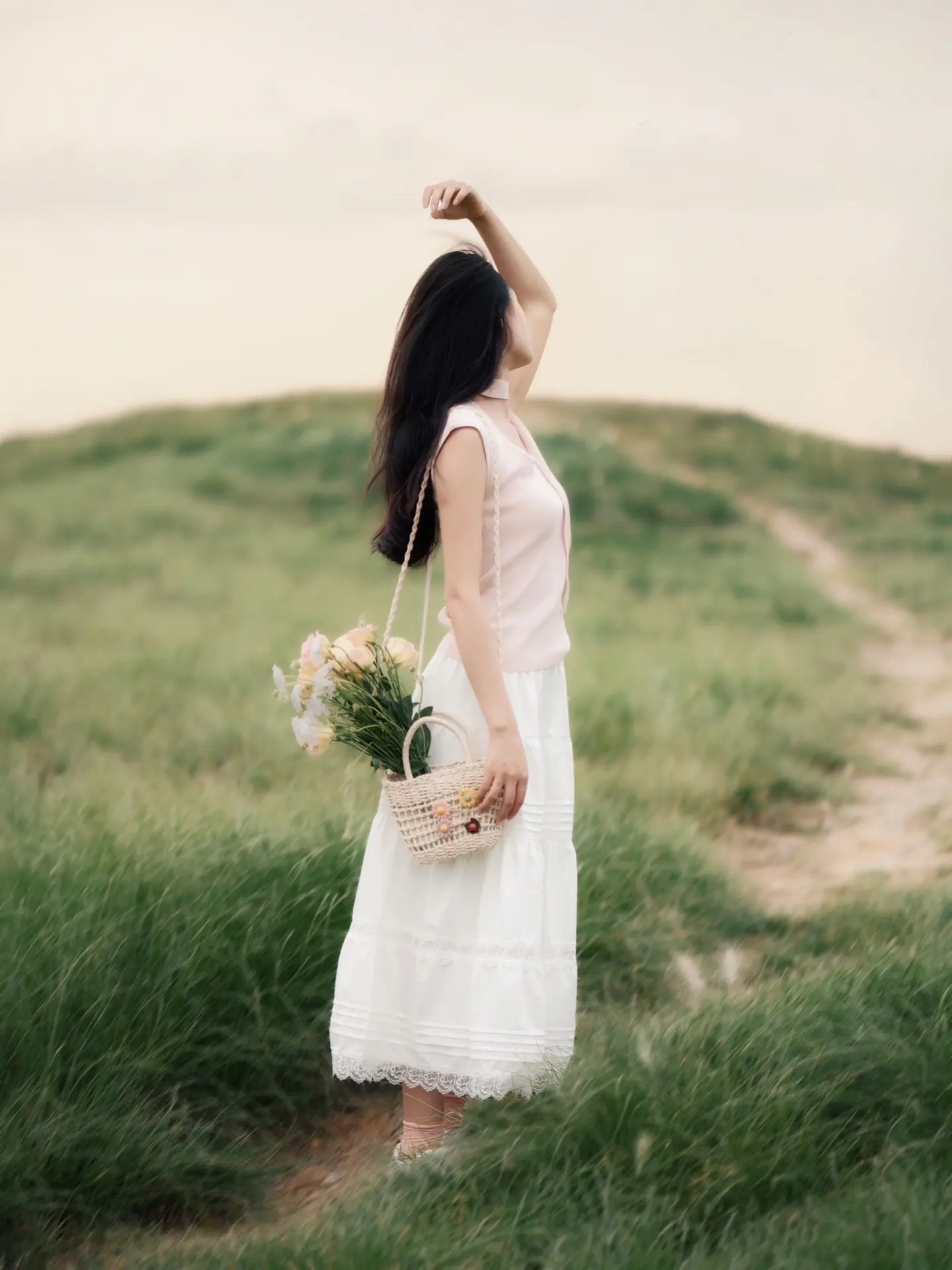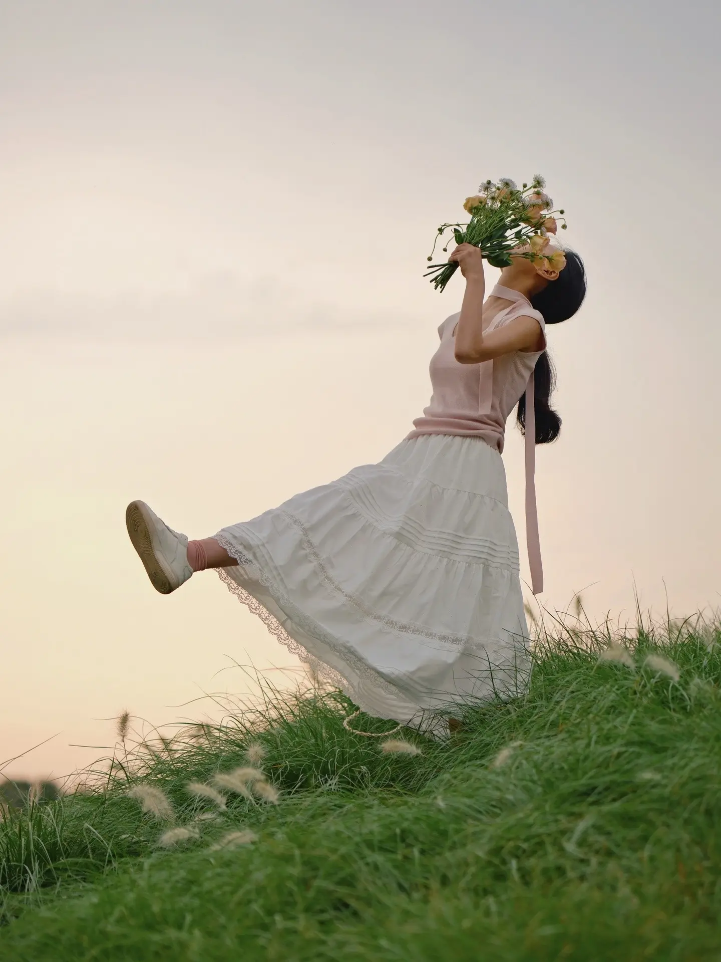 电影故事感公园拍照|浪漫的夏日傍晚🌆。夏天的天气多变 从出门前的晴天,到乌云密布 傍晚时,远方的天空又有了淡淡的晚霞 不同的光线让画面多了一些故事感 山坡上,风吹起白色的裙摆 拍出文艺电影感