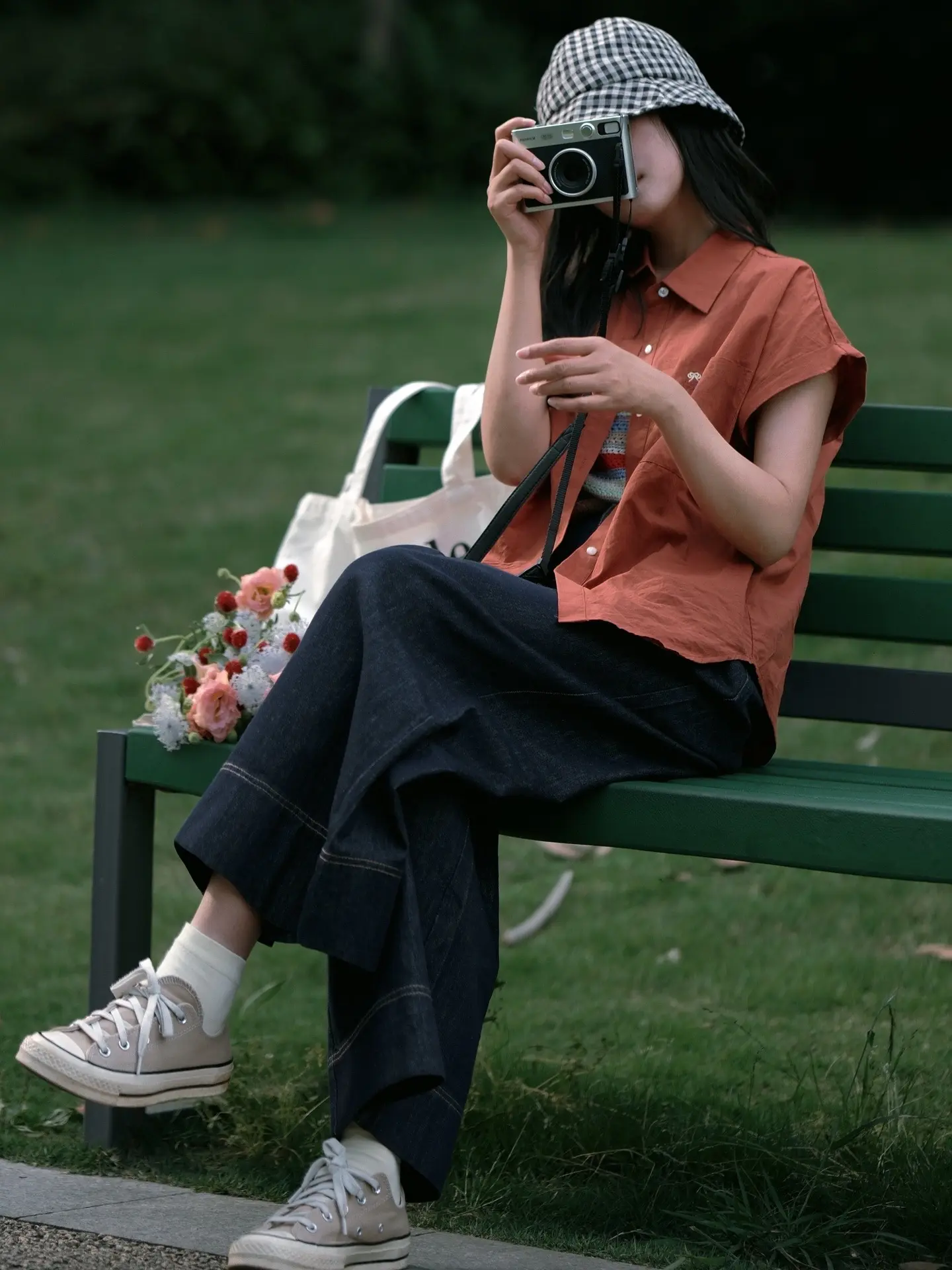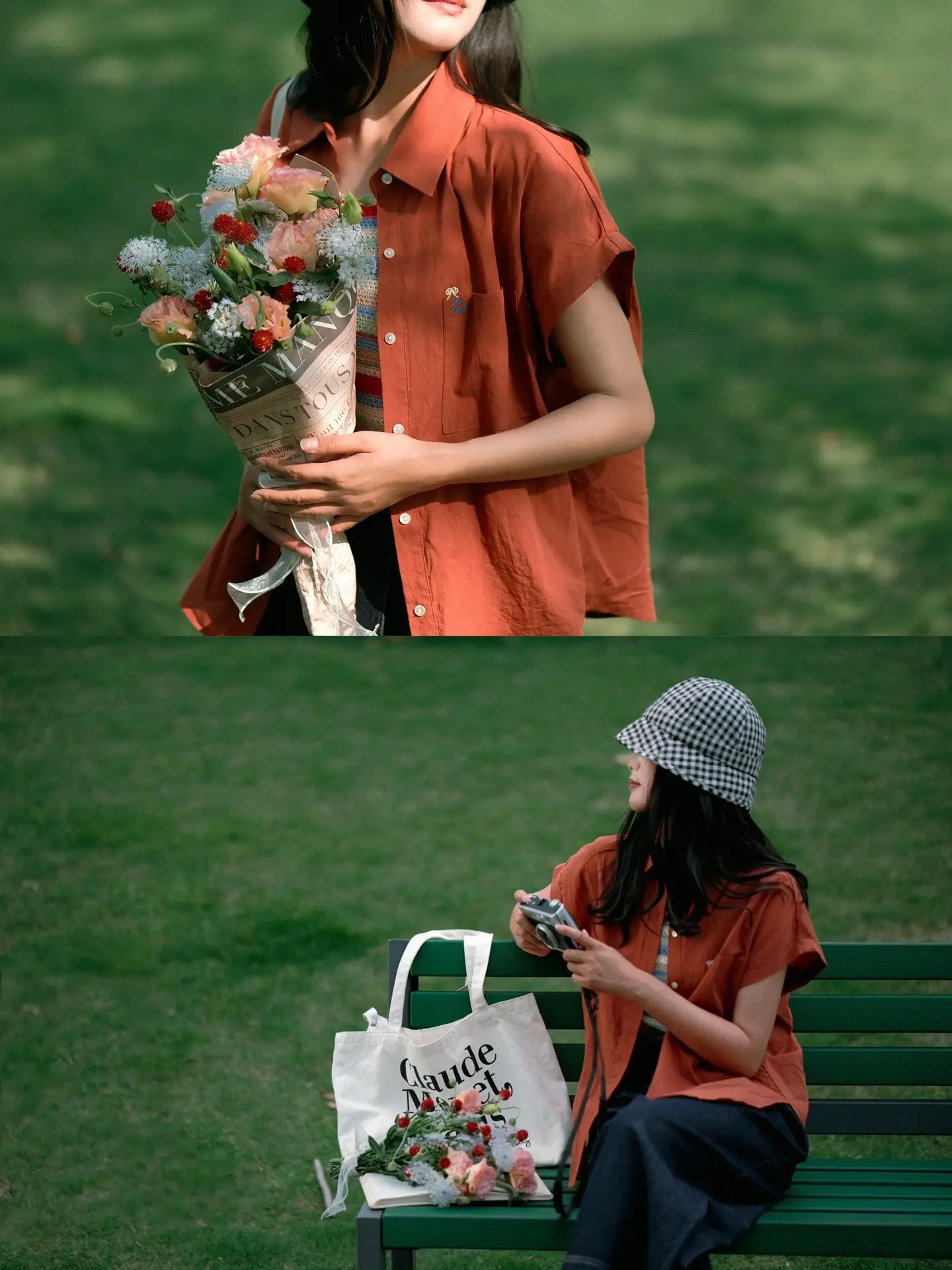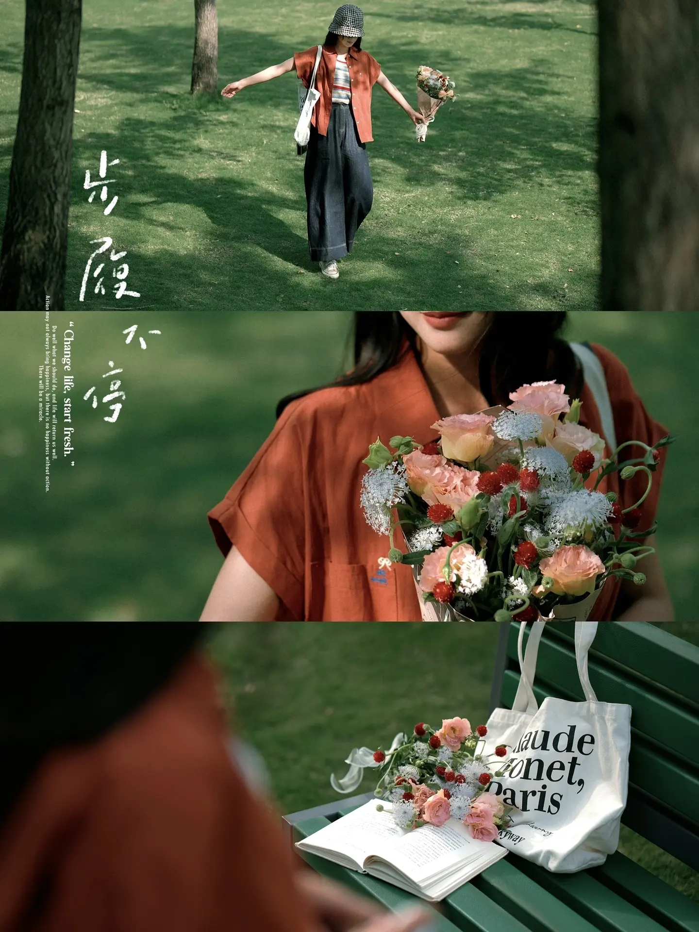 公园草坪、长椅拍照/电影感随手拍。有光影,有色彩对比 电影感似乎也就有了 …… 夏日公园绿草地不露脸氛围感拍照get 🍃❤️📷