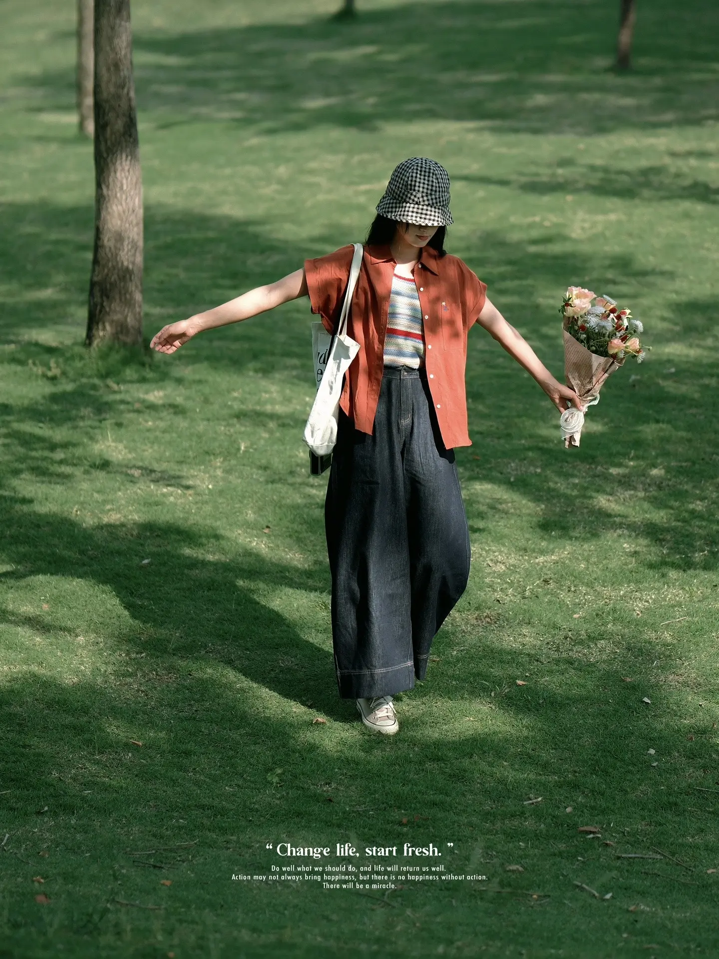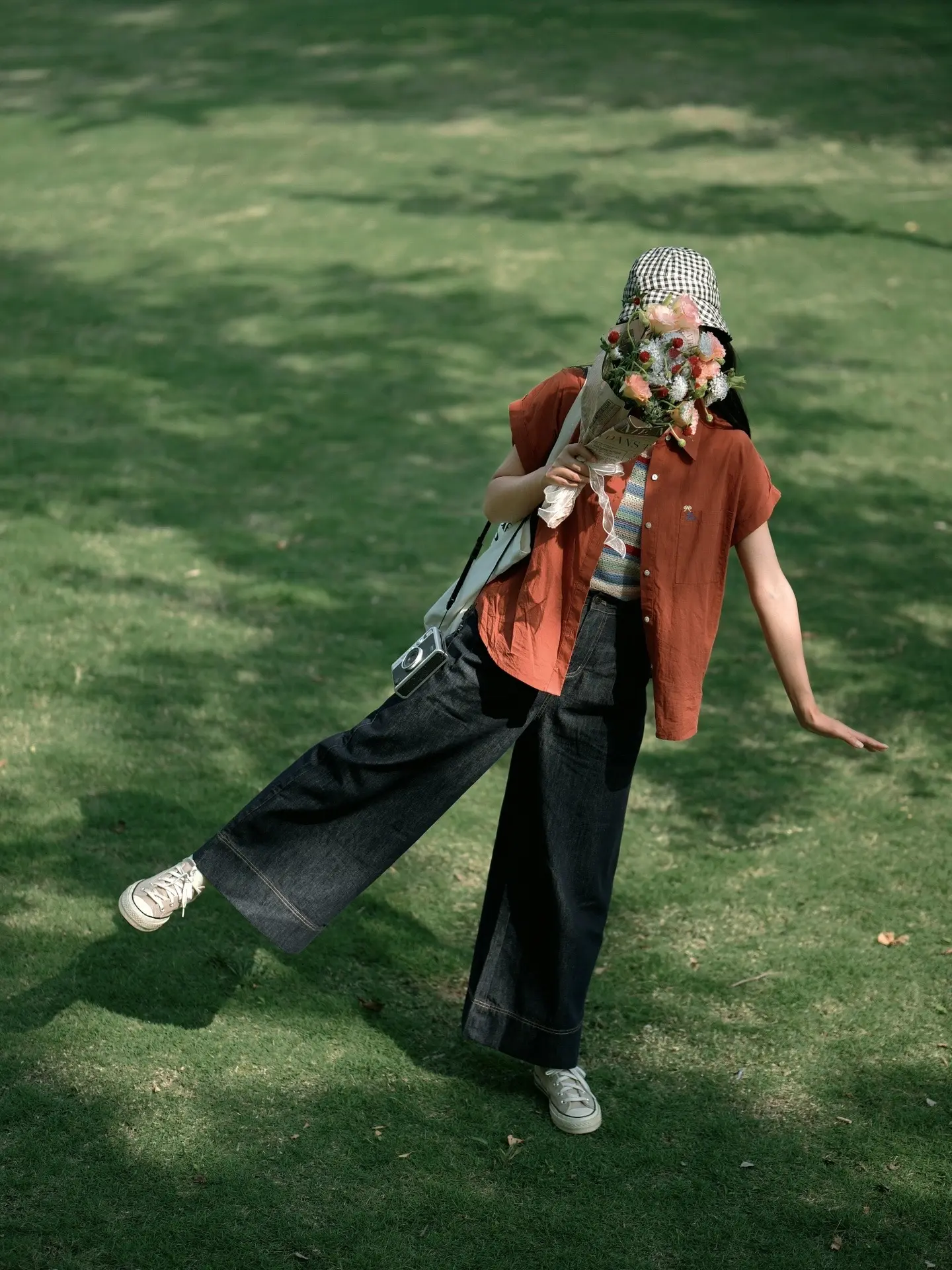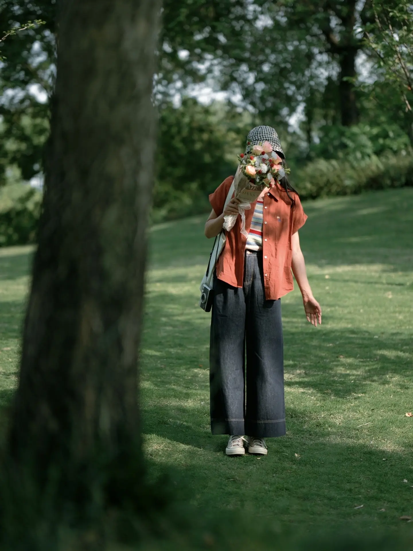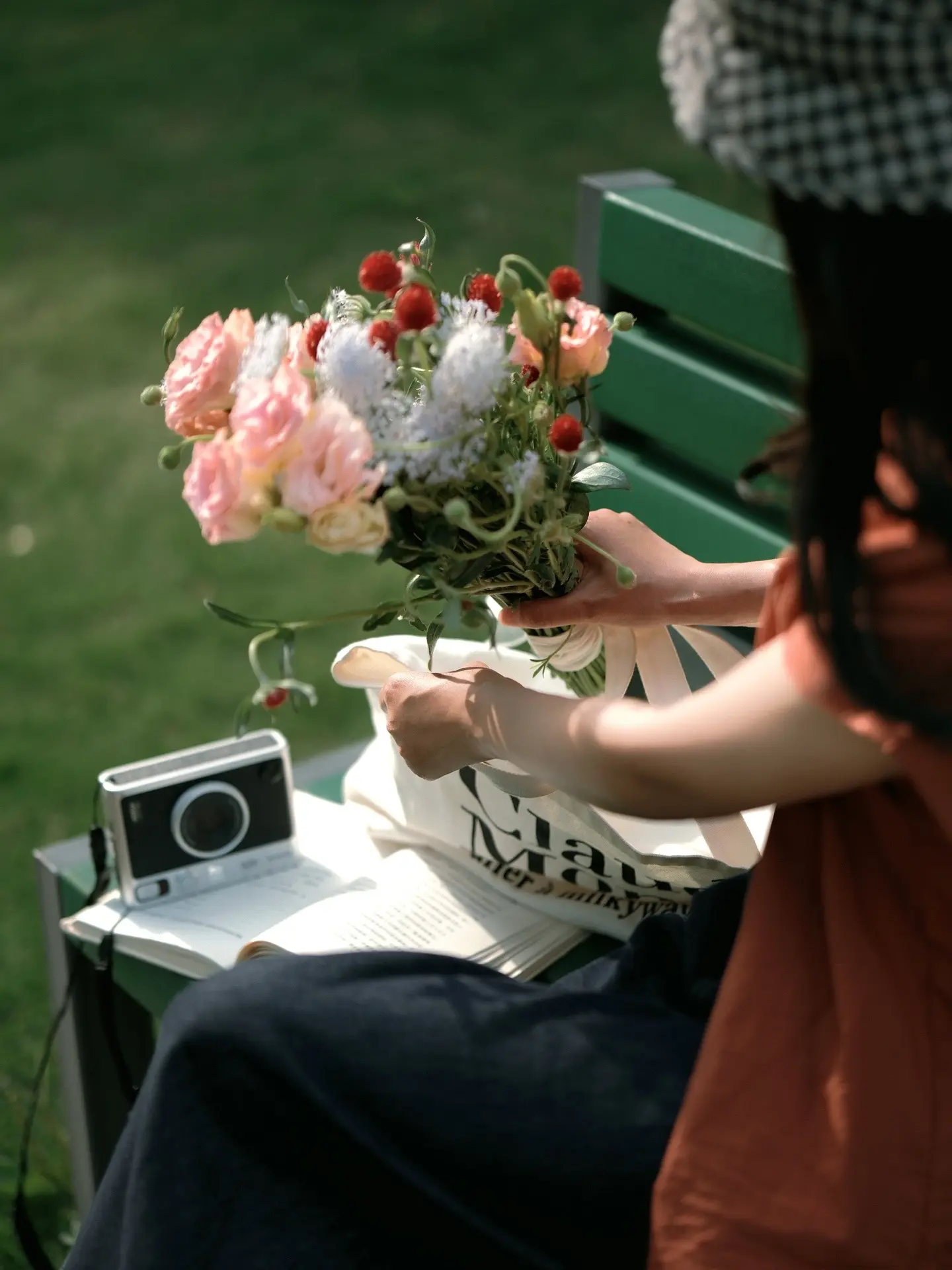 公园草坪、长椅拍照/电影感随手拍。有光影,有色彩对比 电影感似乎也就有了 …… 夏日公园绿草地不露脸氛围感拍照get 🍃❤️📷