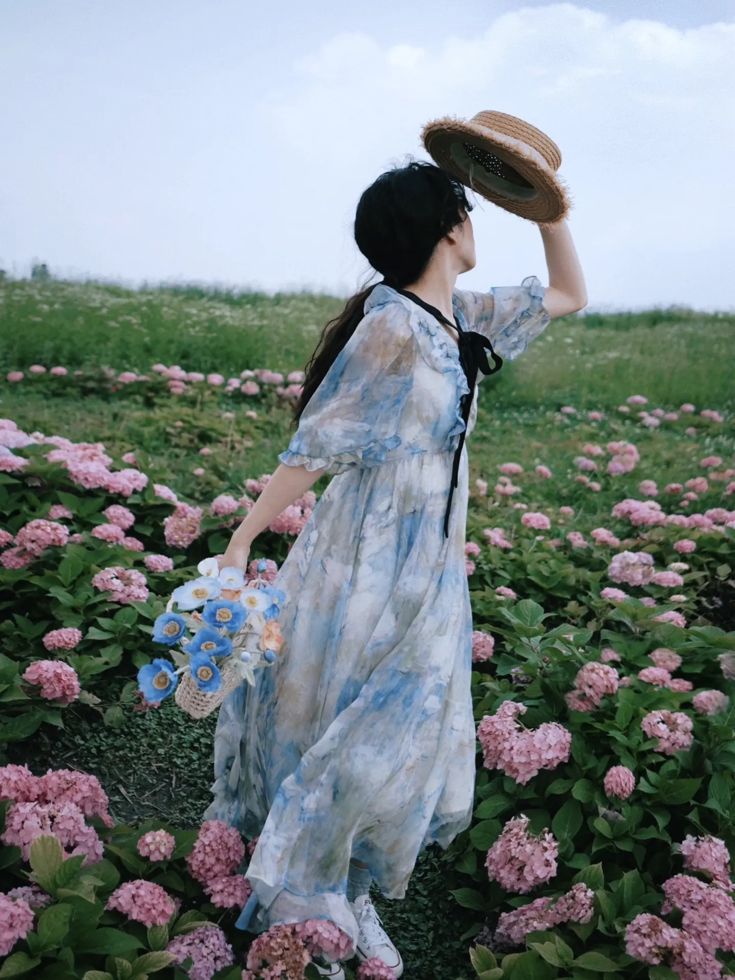 无尽夏的夏|夏日绣球花海文艺氛围感拍照。夏日傍晚的风 与浪漫的绣球花海...