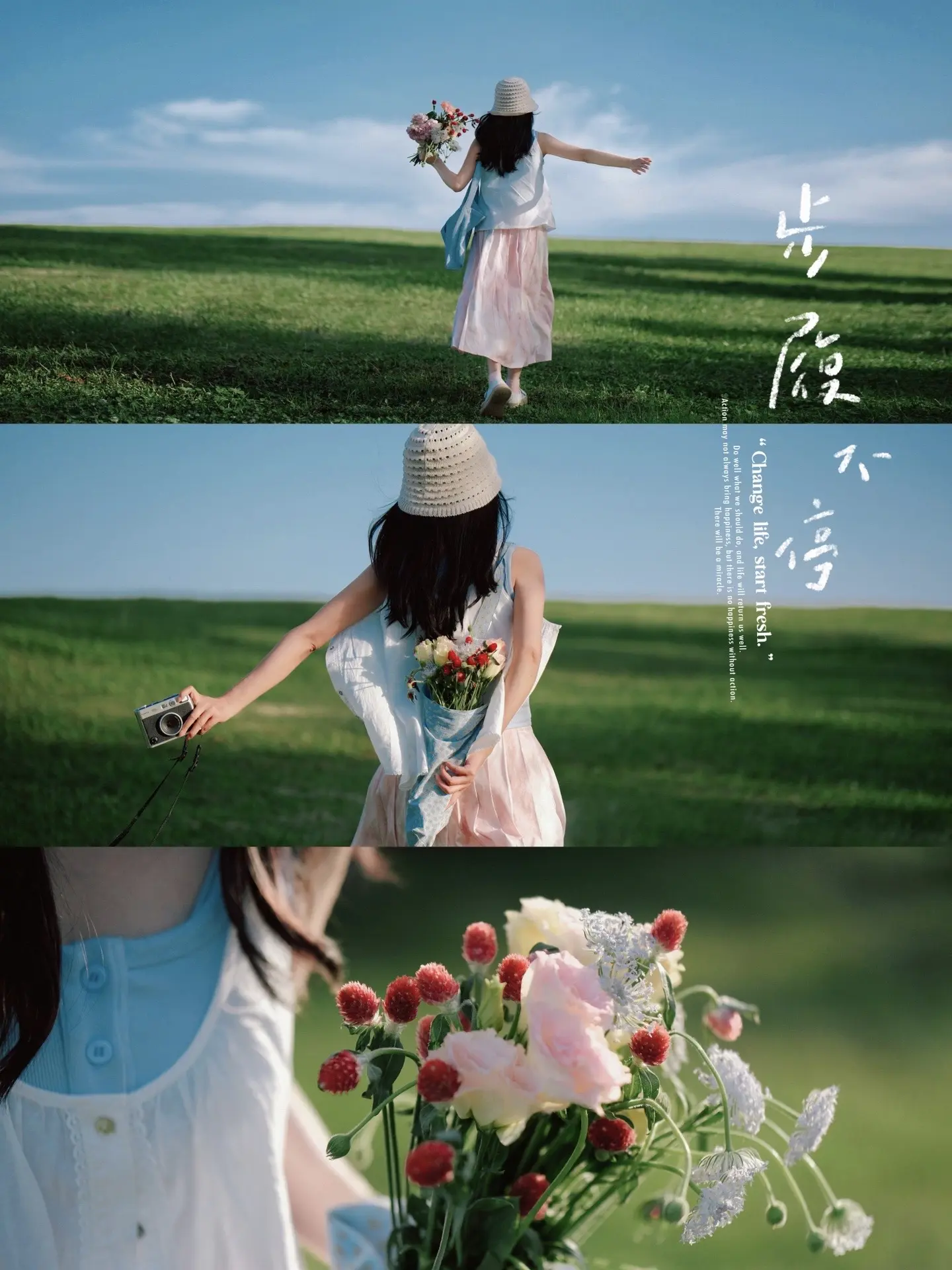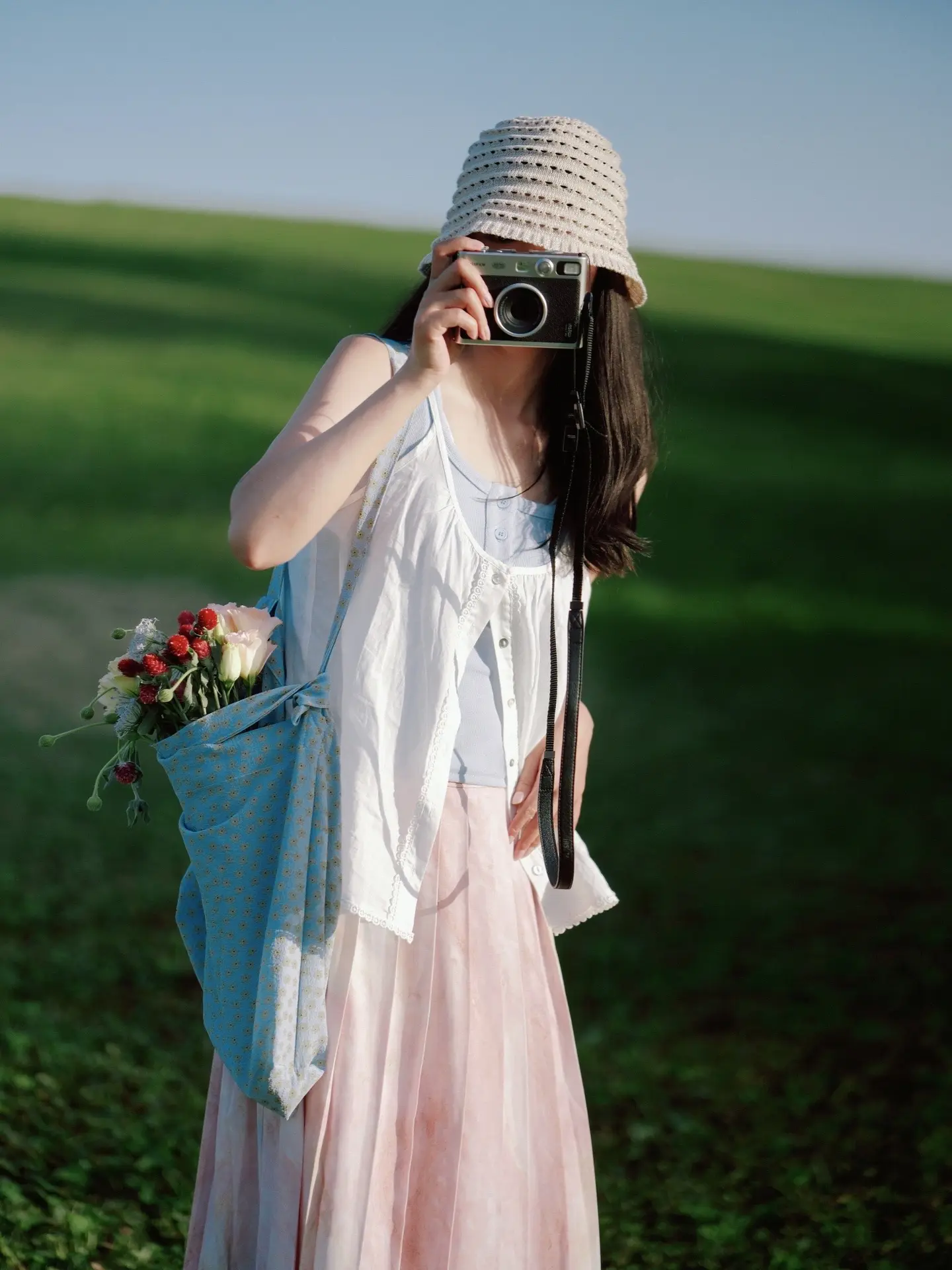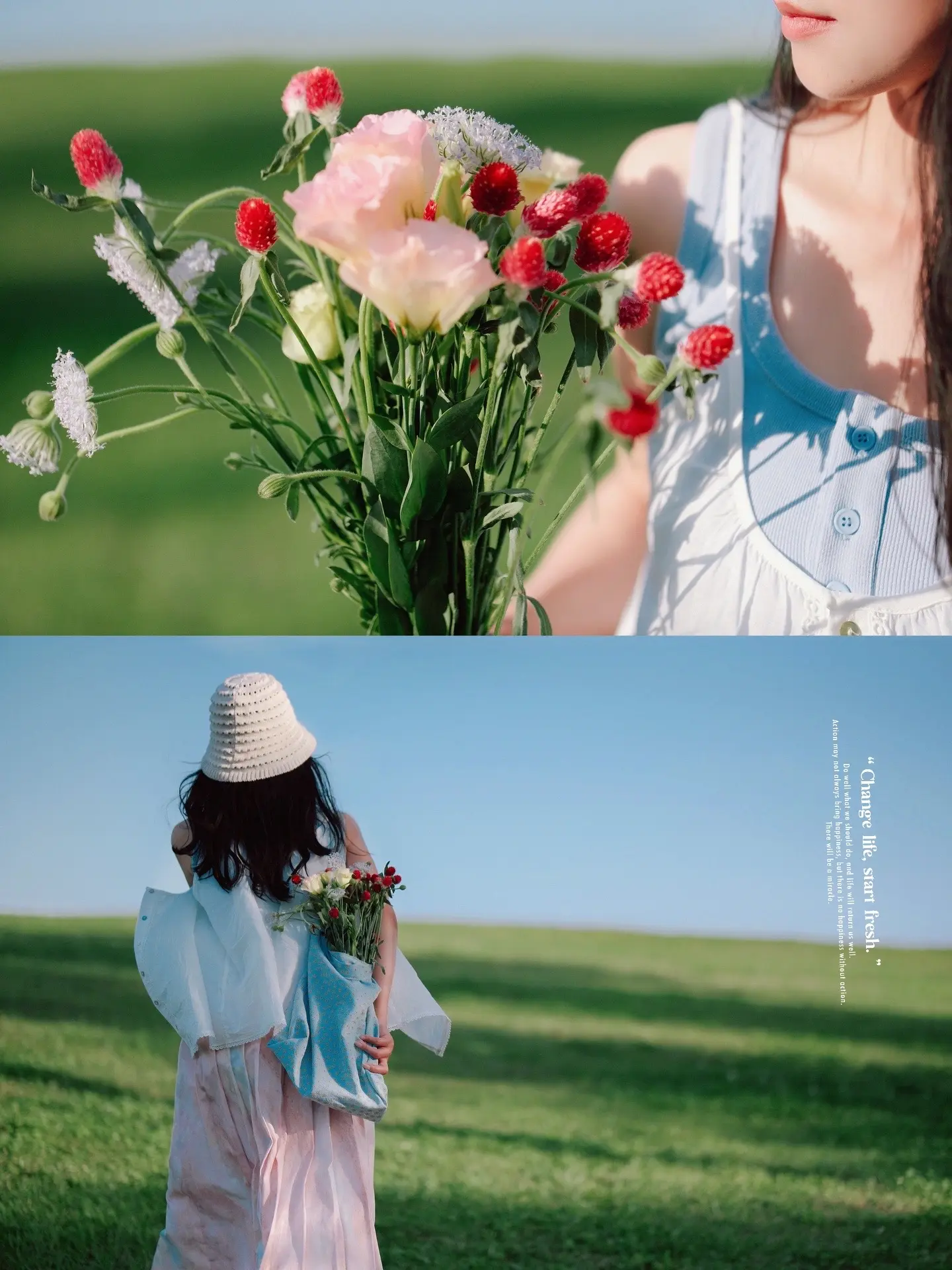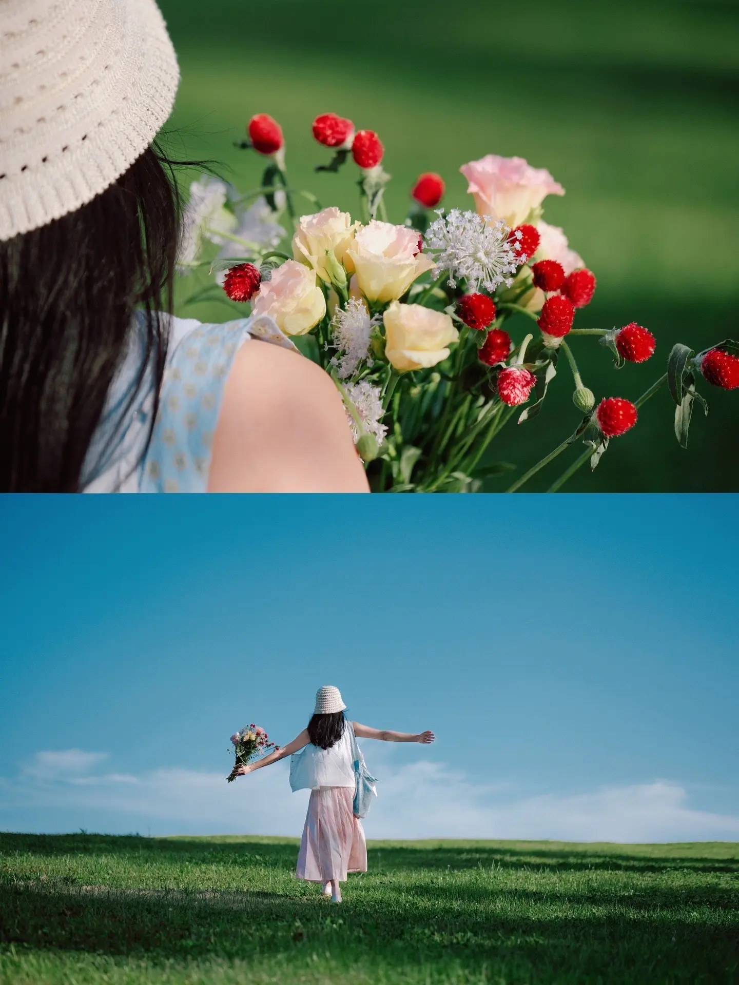 是夏天的气息呀/文艺氛围感拍照。前一段时间太热了,没法面对阳光 几乎只拍背影啦~~ / 草坪拍照~假装是草原 下午5.6点拍摄,有夕阳带来的光影才能拍~
