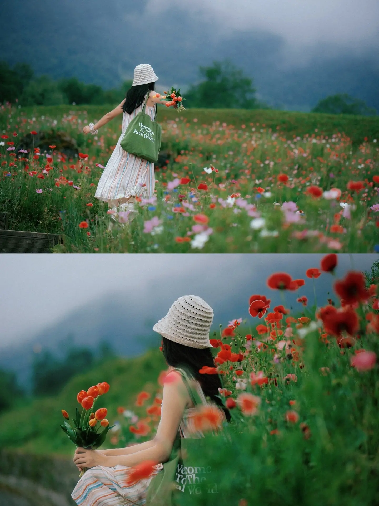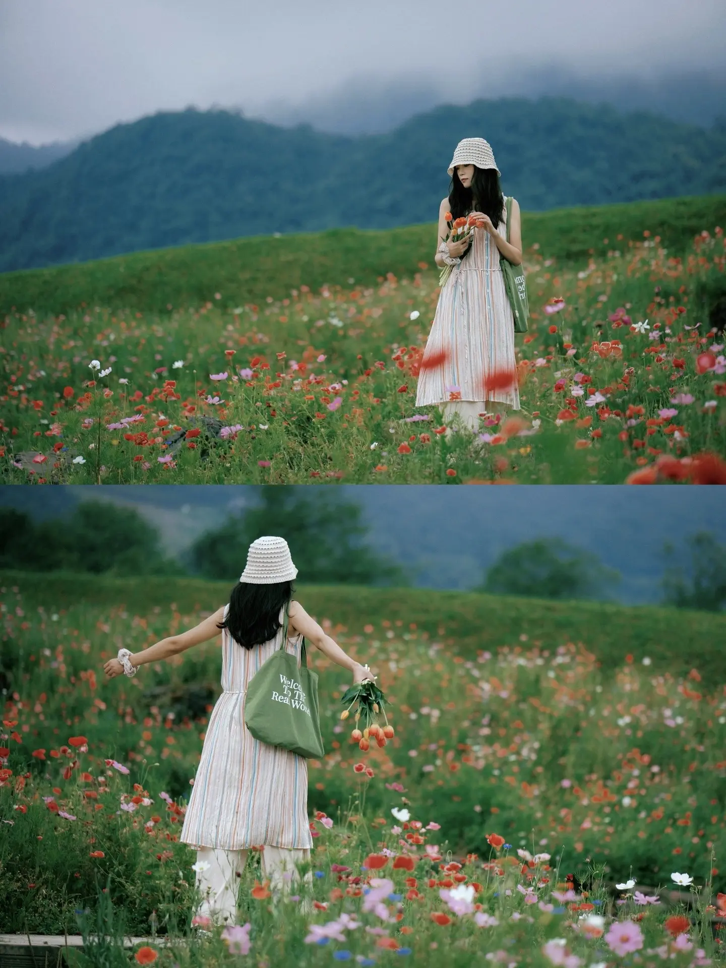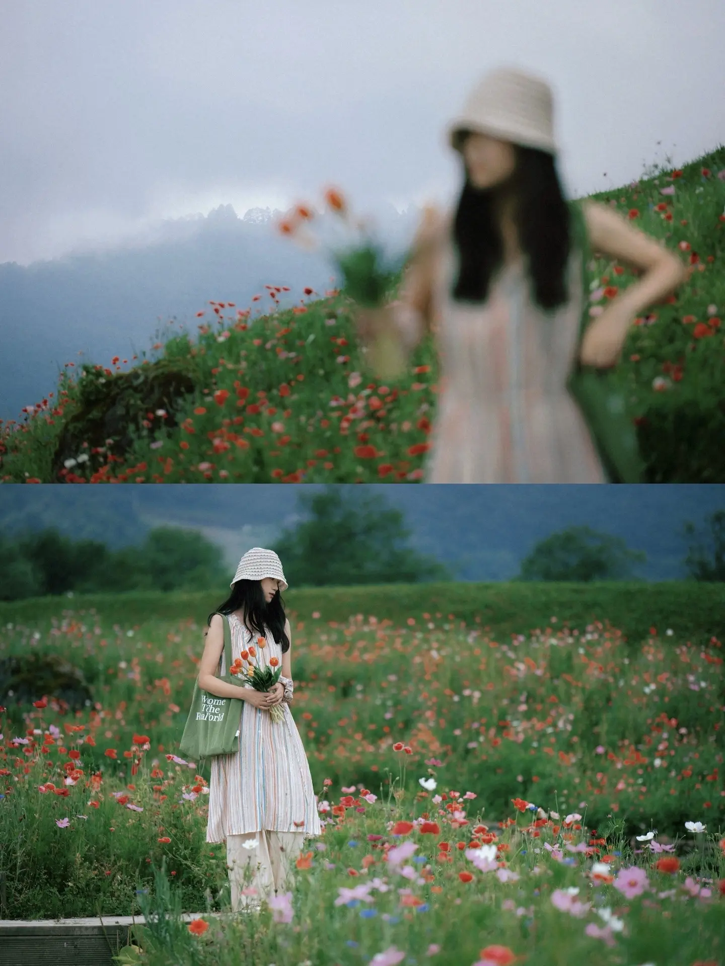 文艺胶片风|夏日山间花海拍出氛围感。郊游遇上阴天~ 也可以拍出文艺氛围...