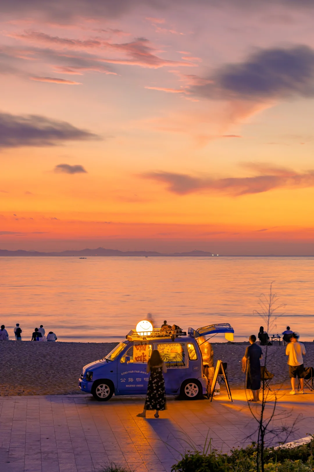 虽然有起床困难症,但是看到日出前后的美景还是很值得的,夏天日出时间比较早,建议先看当天日出时间,提前半小时到达,因为日出前的朝霞也是大自然的调色盘🎨! * 📍:广东汕头南澳岛 * 拍日出不要只是拍太阳,可以拍渔船与日出,路边的咖啡车也是很好的拍照元素,日出前天空变幻的色彩真的超级出片,一定要提前踩点,早点到!