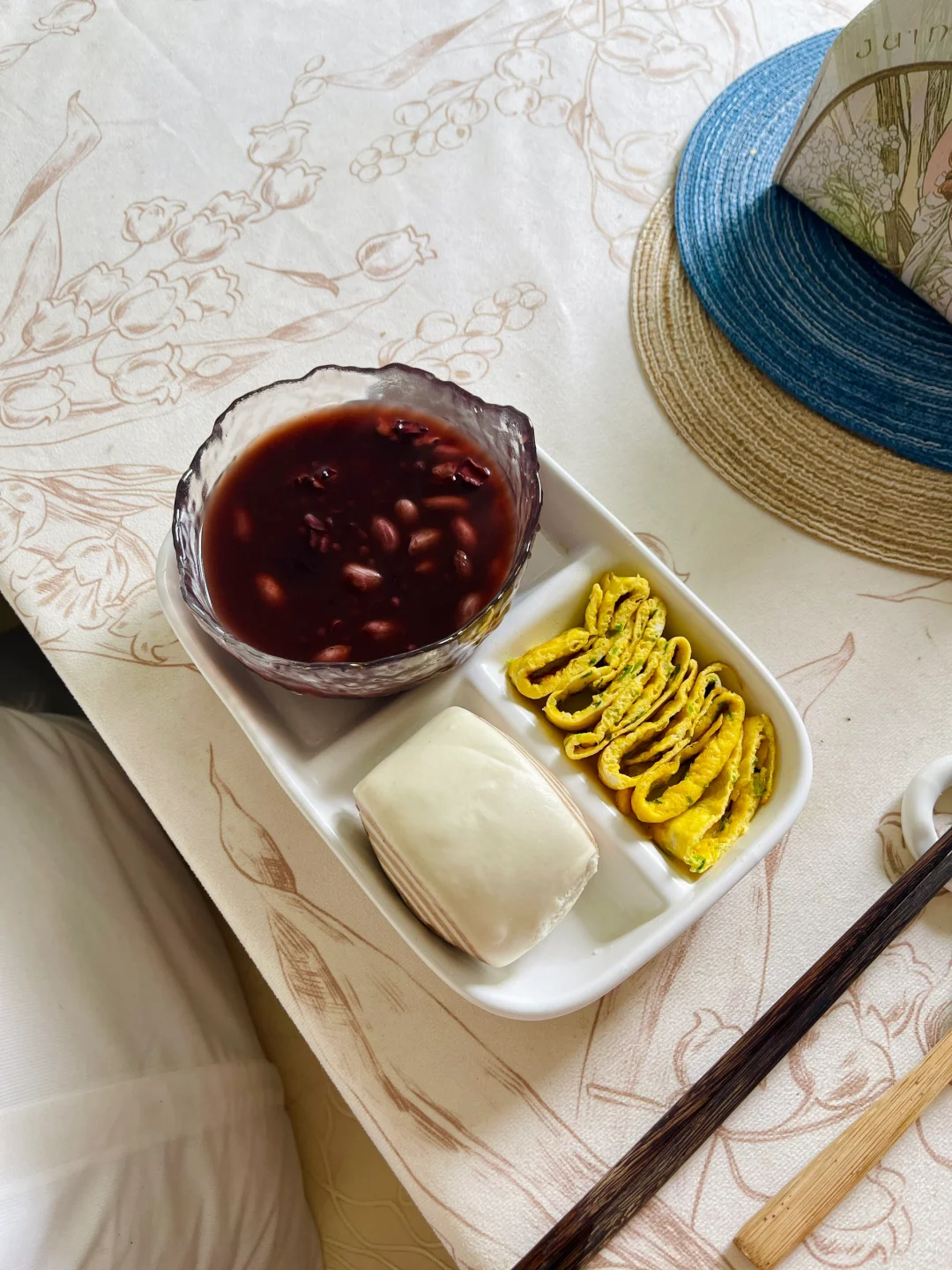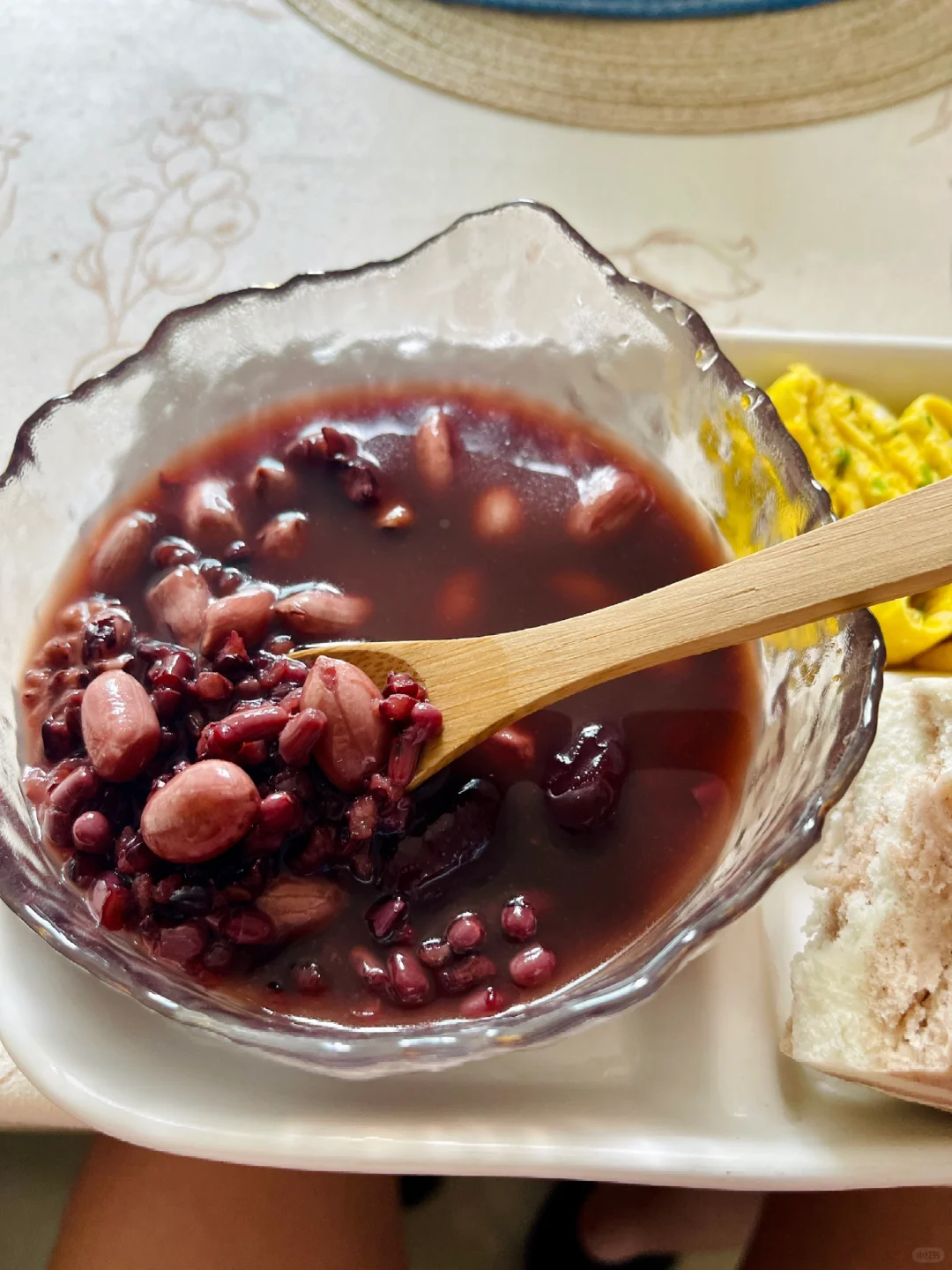 🍳早餐分享: 五味红汤 小葱鹅蛋 馒头 🍽️食材准备: 红豆🫘 黑米 花生🥜 红枣 核桃 今日最佳红枣,超级甜,口感还不腻[派对R]缺铁的姐妹冲一波,一周不用多,一直两次就可以啦[举手R]