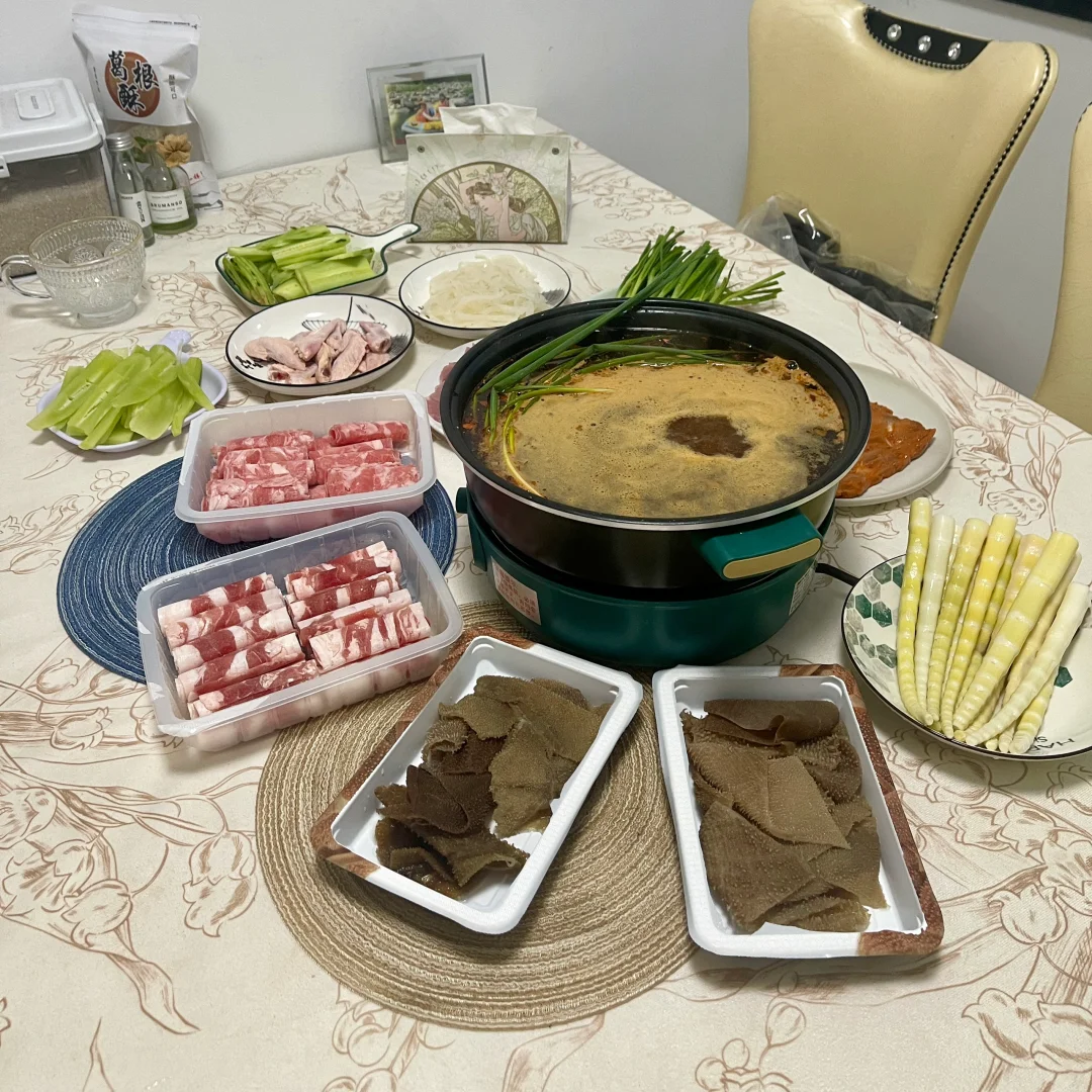 五点不到的早餐 下班后在家火锅 孕期的快乐🎉能吃能喝