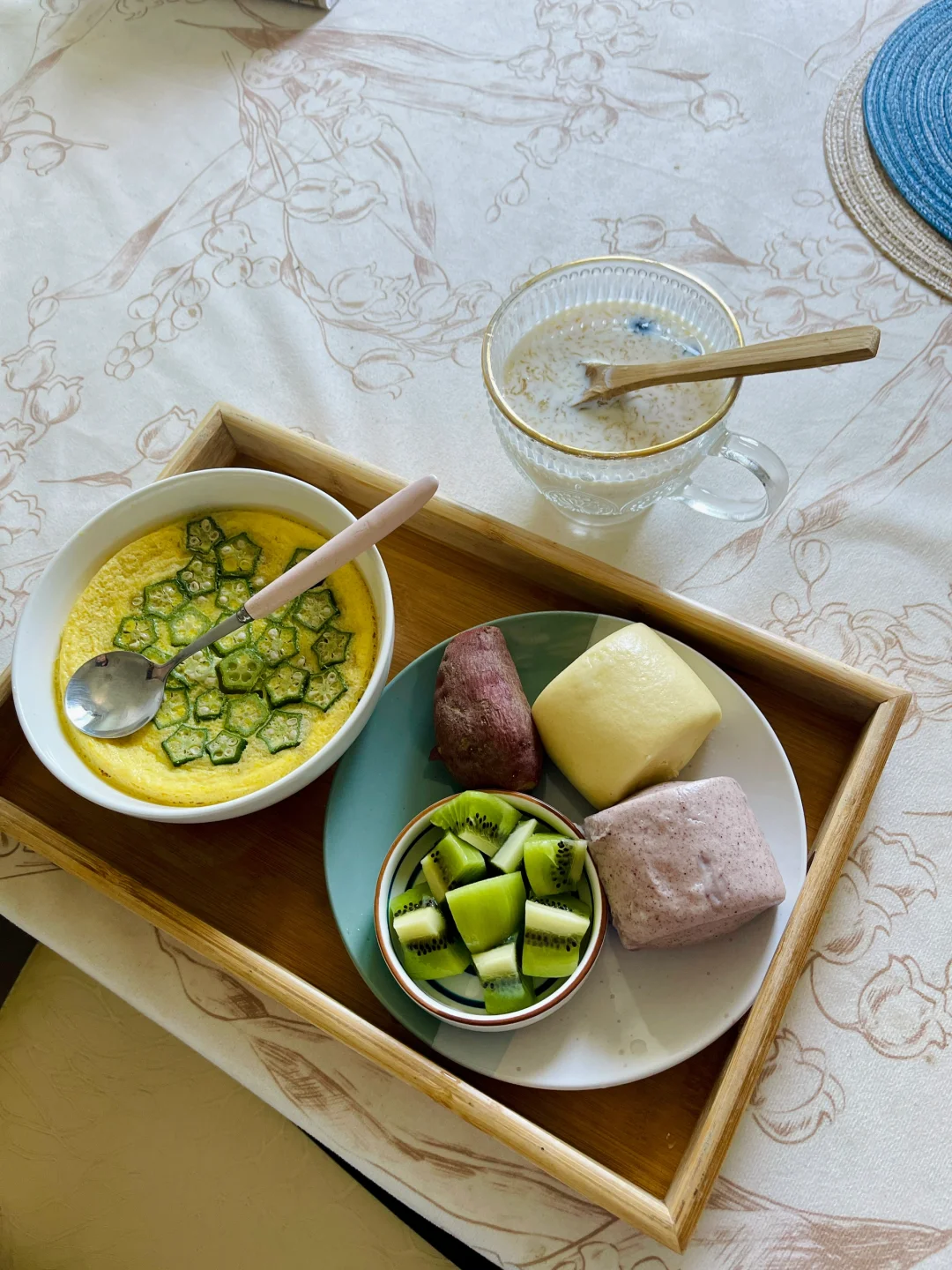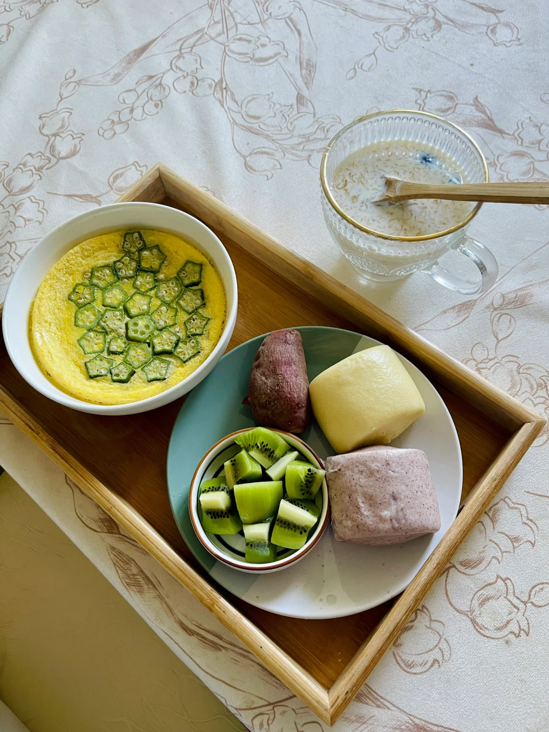 今日早餐: 秋葵鹅蛋羹 全麦小馒头 红薯 猕猴桃 燕窝牛奶🥛 孕期一直都缺铁, 最近感觉真的好累,每天都无力,注意力也无法集中,昨天还严重到整个人冒虚汗 产检🧑⚕️说宝宝偏小得追加营养才行,补开了营养铁、叶酸、DHA、维生素C,最后2个月把早餐吃的营养全面些,争取把宝宝孕周数追上去[皱眉R]