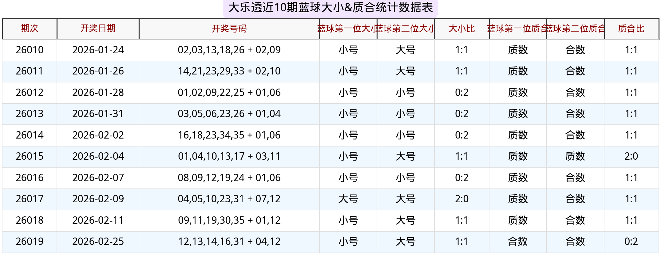 大小比 1:1(04小、12大),延续26017–26019三期稳定结构;