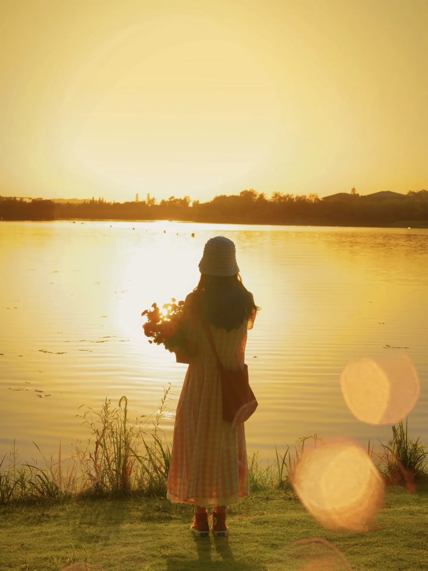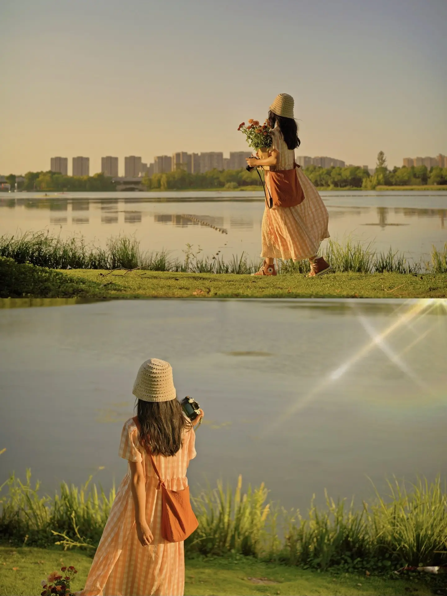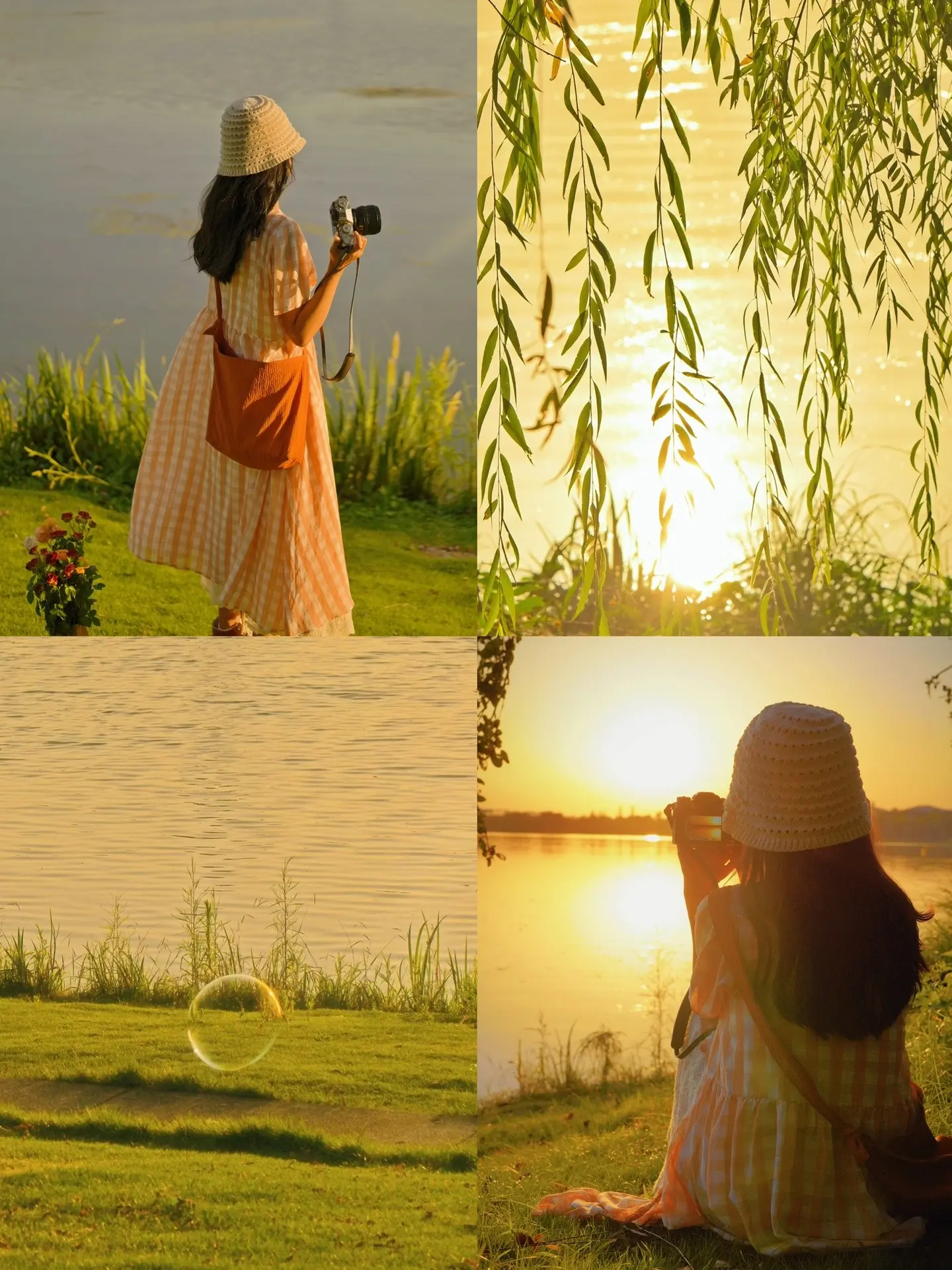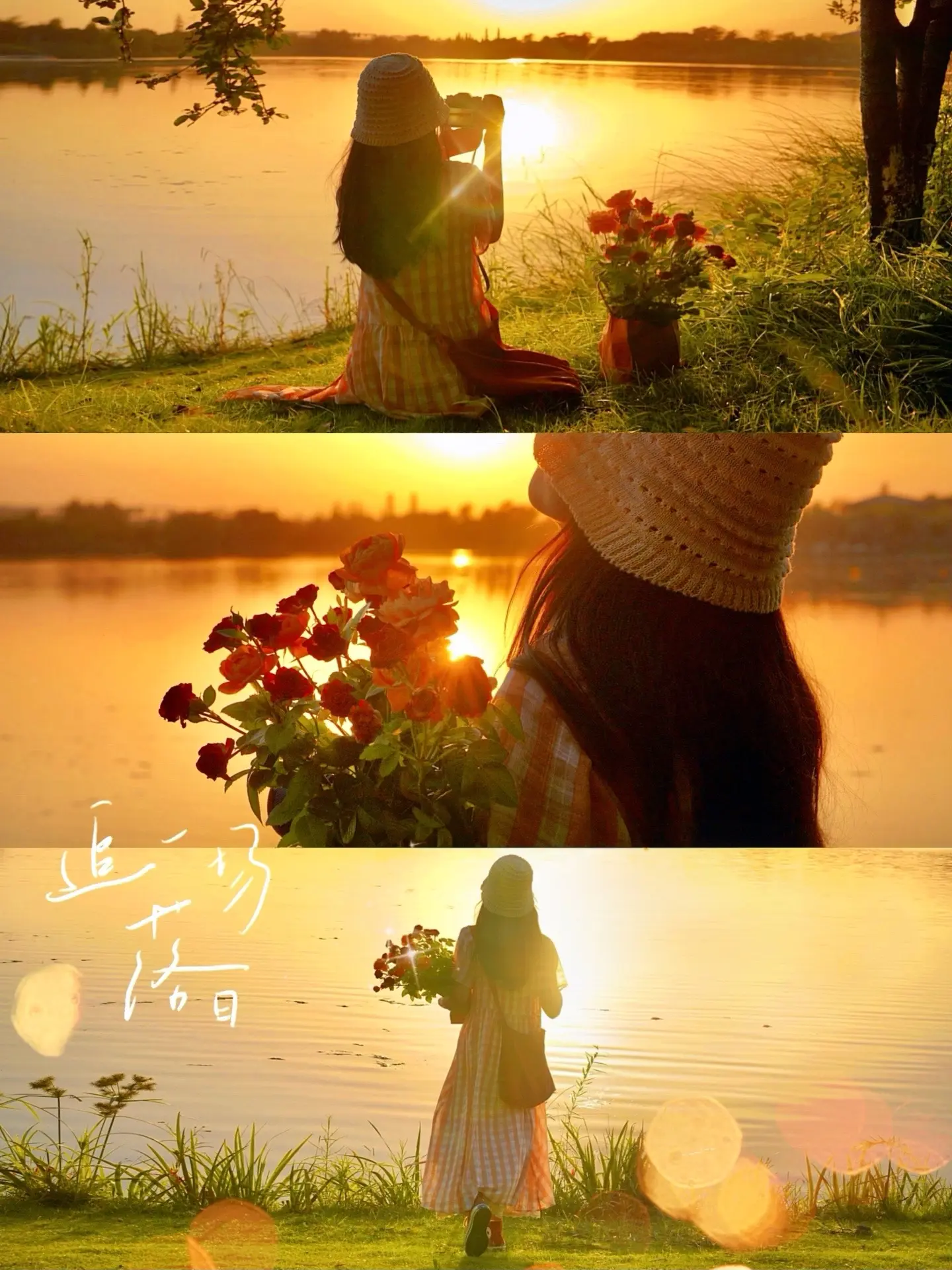等一场日落🍊湖边拍出电影感|浪漫橘子海。等到了一场浪漫的日落 / 🌇