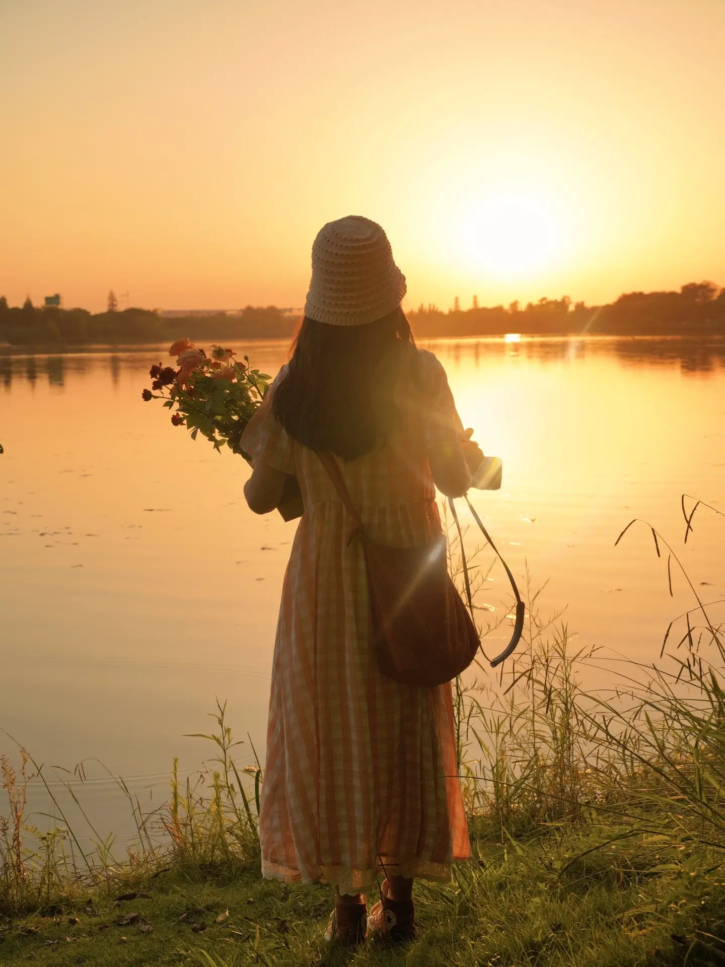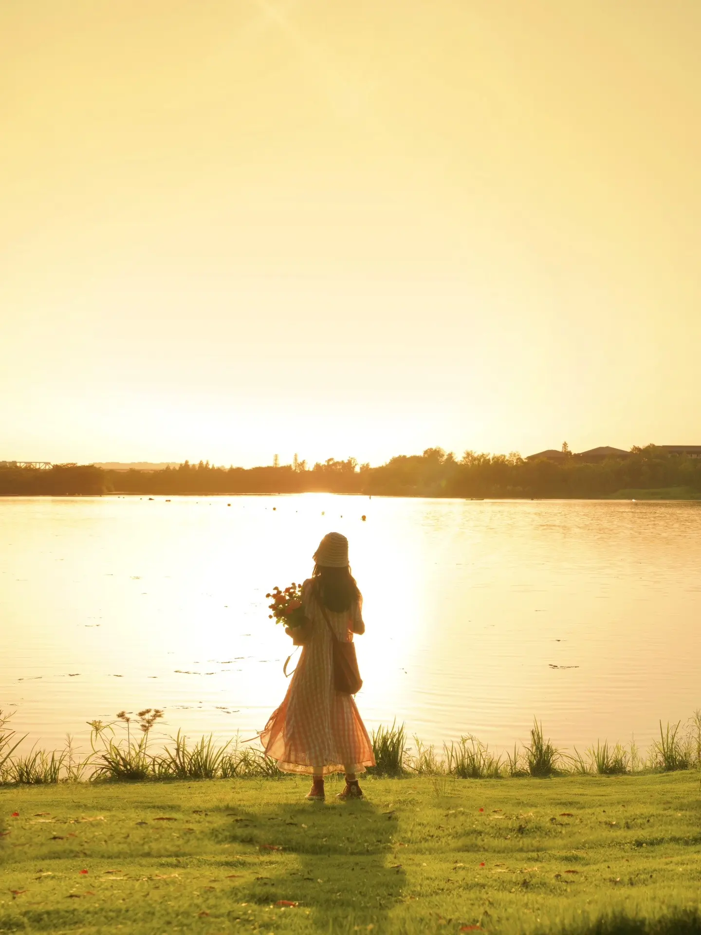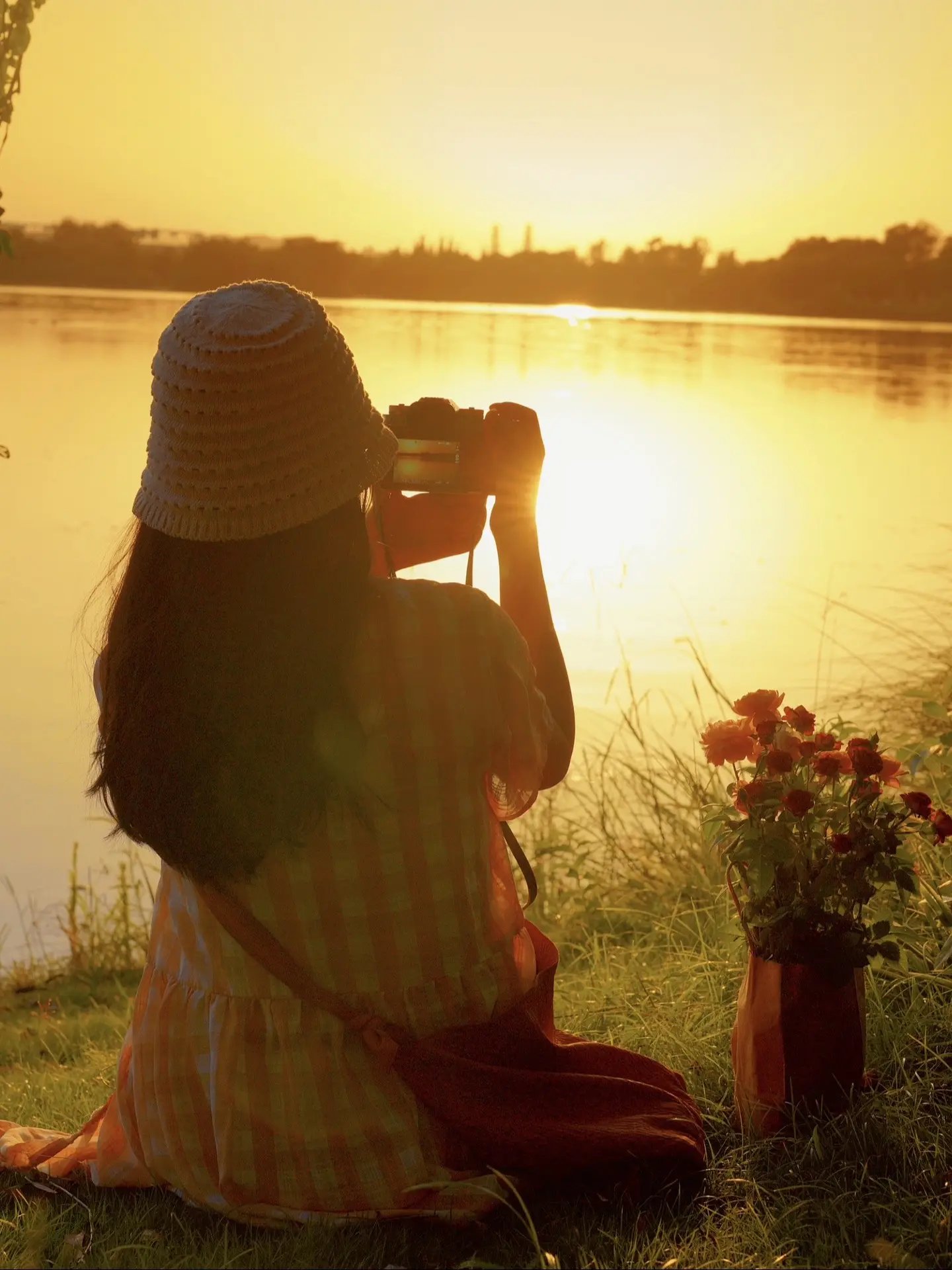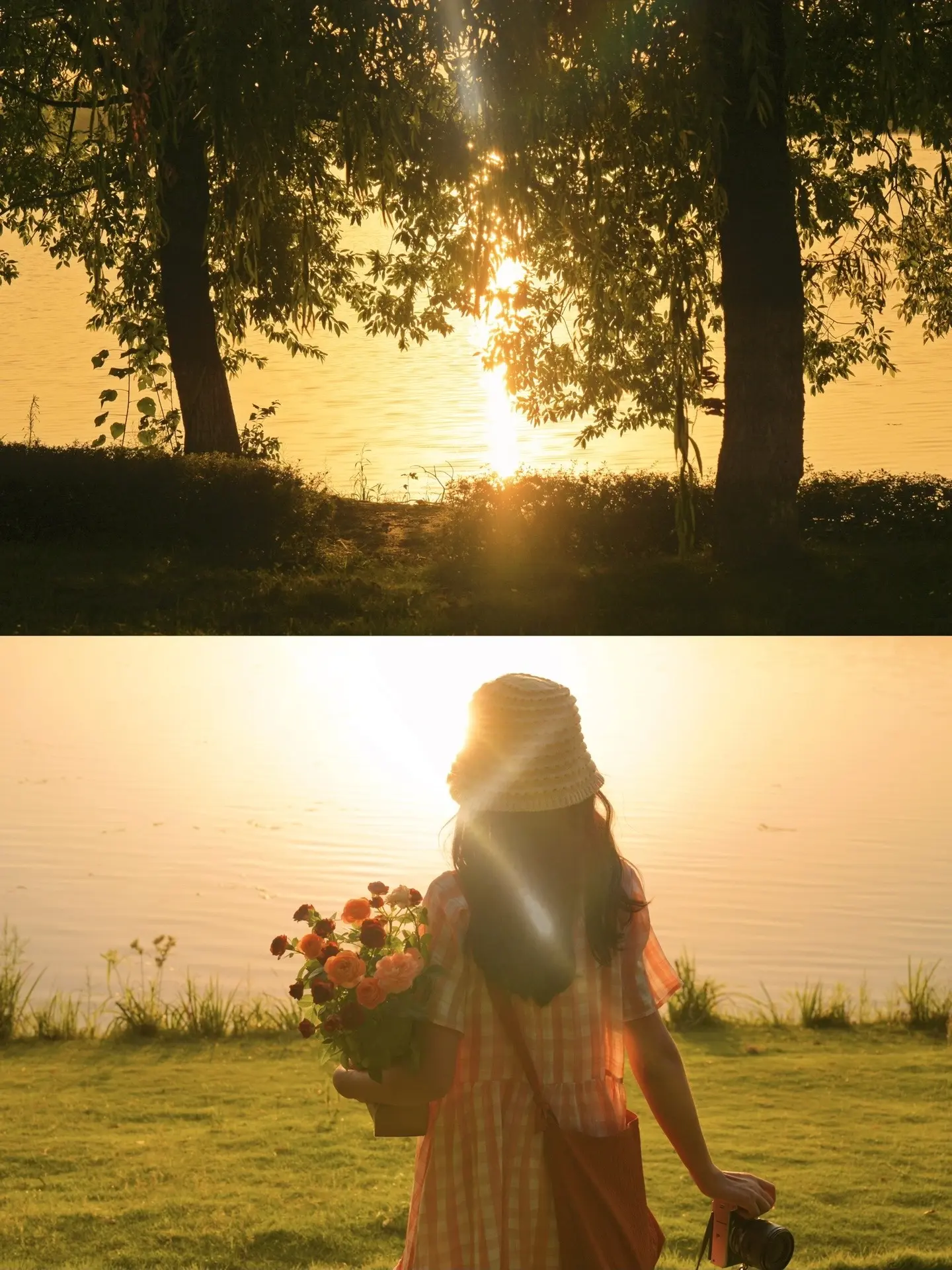 等一场日落🍊湖边拍出电影感|浪漫橘子海。等到了一场浪漫的日落 / 🌇