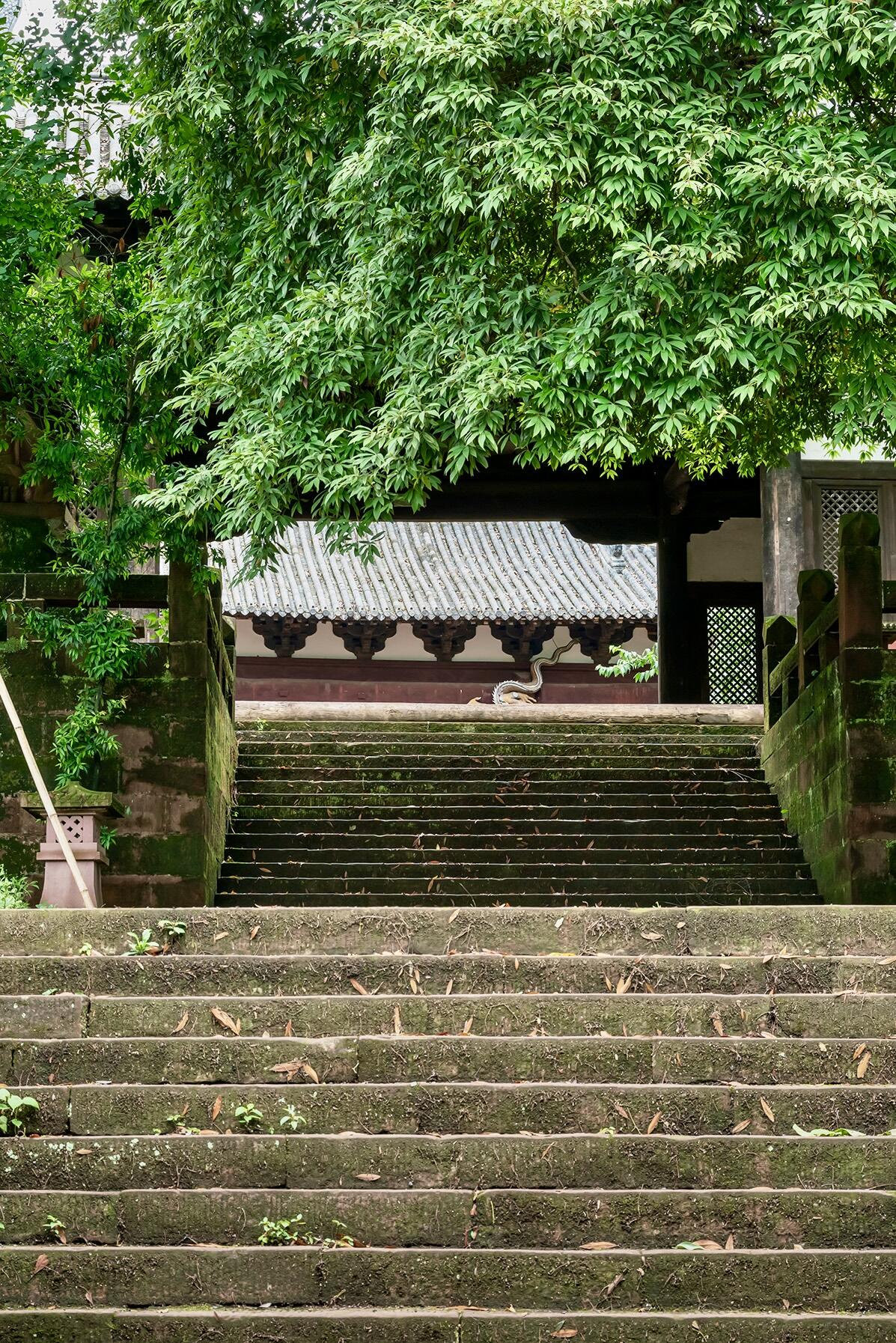 走进峨眉大庙,最先映入眼帘的便是核心建筑飞来殿。这座抬梁式木结构建筑,面阔五间,进深四间,单檐歇山顶的造型在四川盆地的烟雨朦胧中显得格外庄重。与江南建筑灵动的飞檐不同,飞来殿的屋顶坡度平缓,出檐深远,像一把巨大的伞,将岁月的风雨挡在外面。站在殿前仰视,巨大的屋檐仿佛要将天空遮蔽,那种压迫感与震撼力,只有亲眼目睹才能体会。