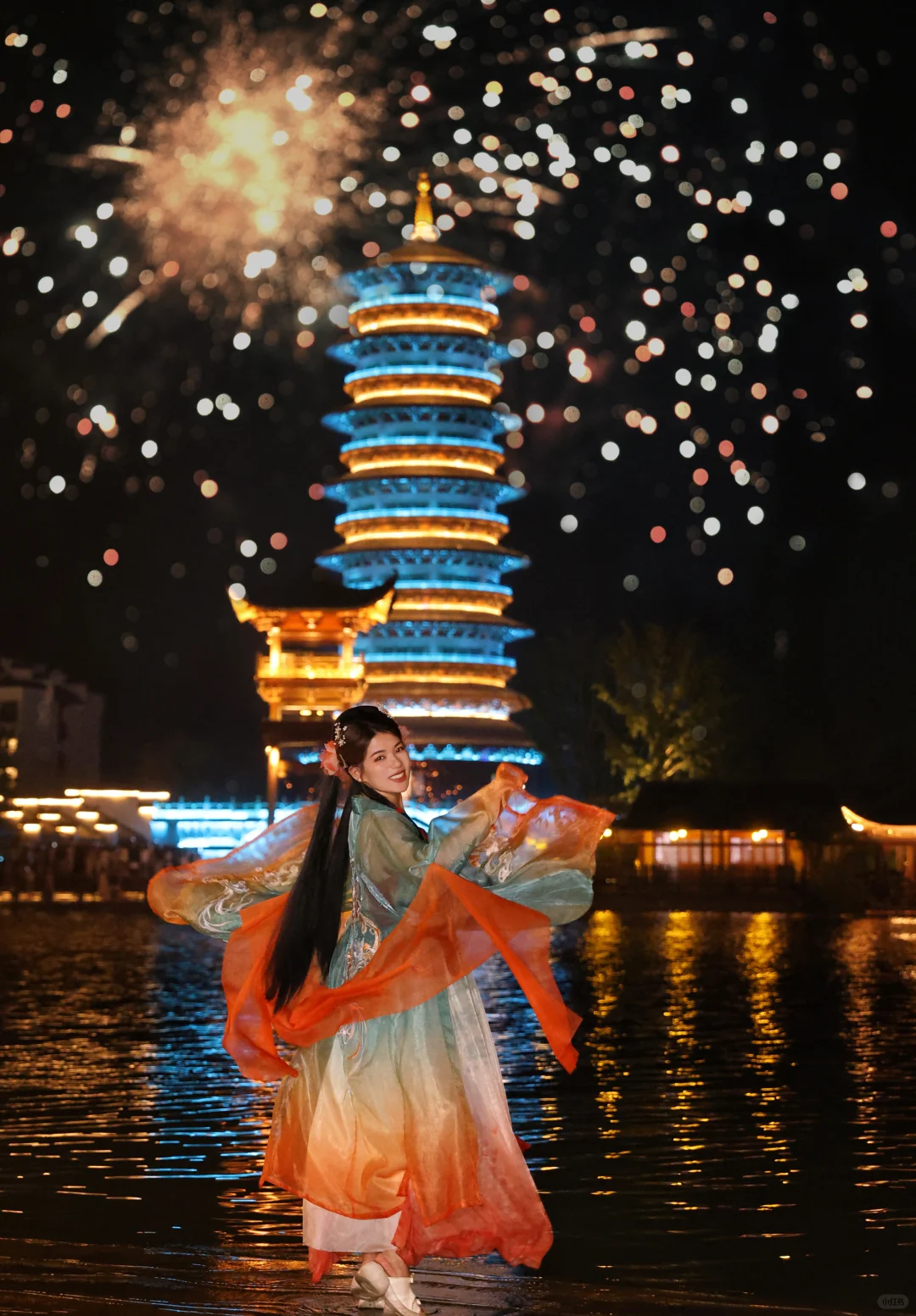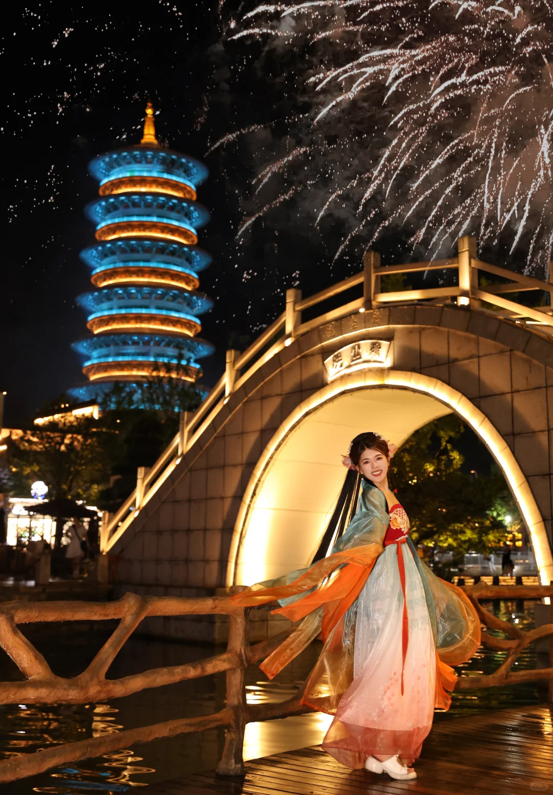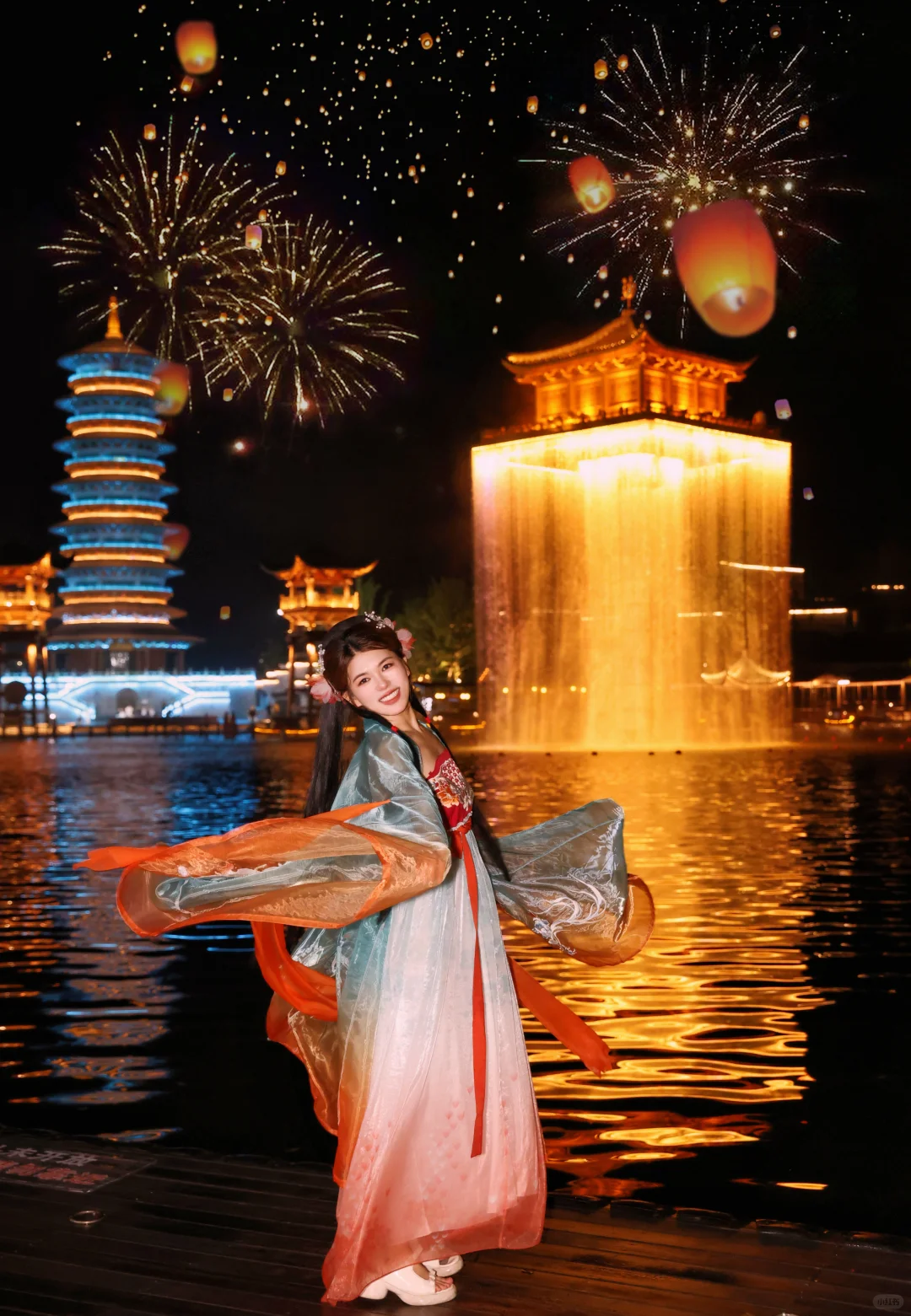 我特意挑选了一套锦鲤汉服,那精美的刺绣和飘逸的裙摆,感觉自己仿佛化身为古代的仙子。每走一步,都像是在诉说着千年的故事。