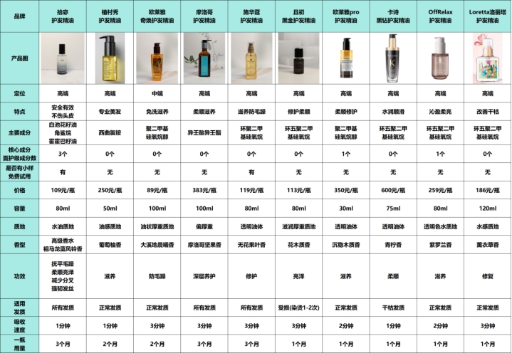 上面的选购小技巧看完,你对护发精油选购有谱了吗?可能还是想参考实测吧?我把几款用过的核心表现整理成表格,都是真实体验,希望帮你避开不合适的