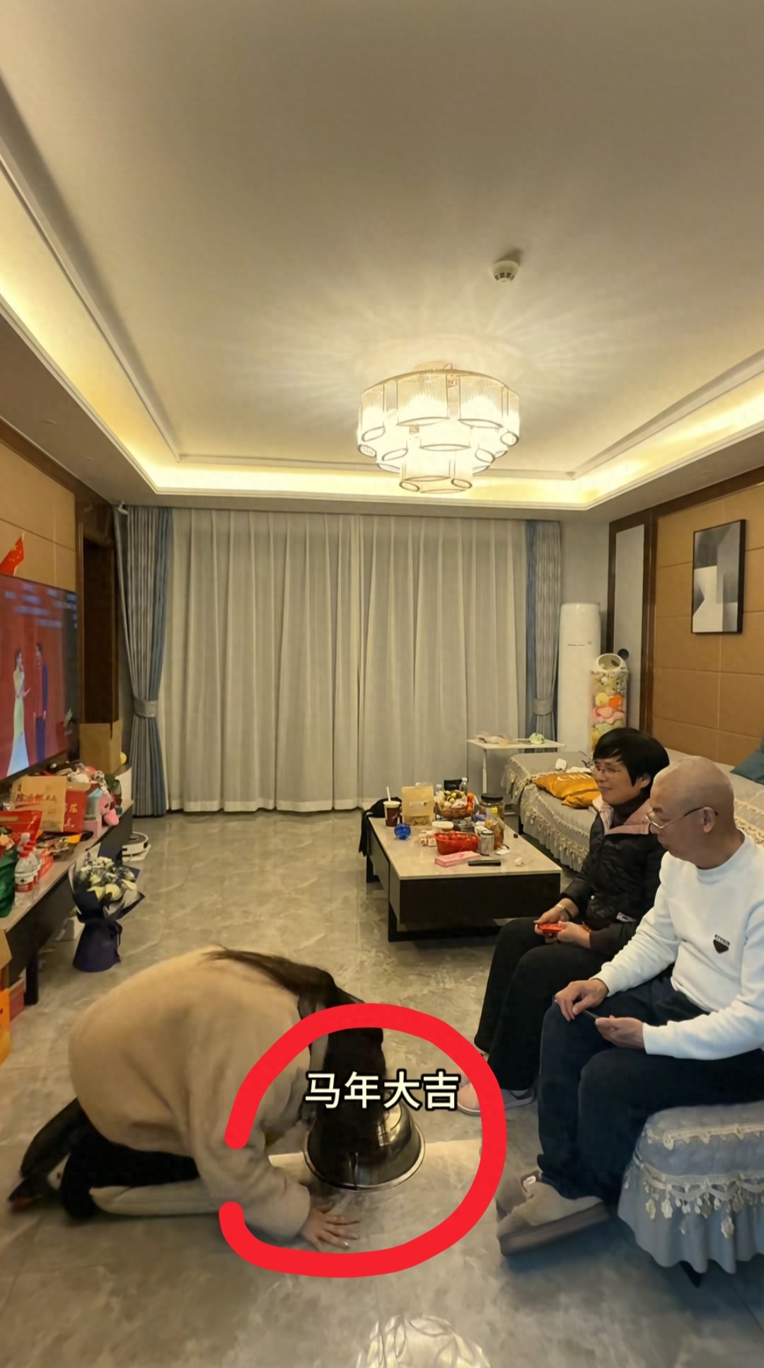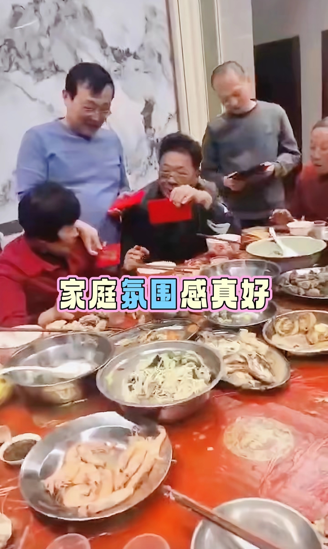 然后她温州爸妈家也超有年味儿,晚辈们挨个给长辈磕头拜年,大哈二哈给爸妈包红包,长辈给小朋友们发压岁钱,有个小朋友磕头磕得超响,古灵精怪的,这不就是我们过年最盼的那种热热闹闹的氛围吗?巴适得很!